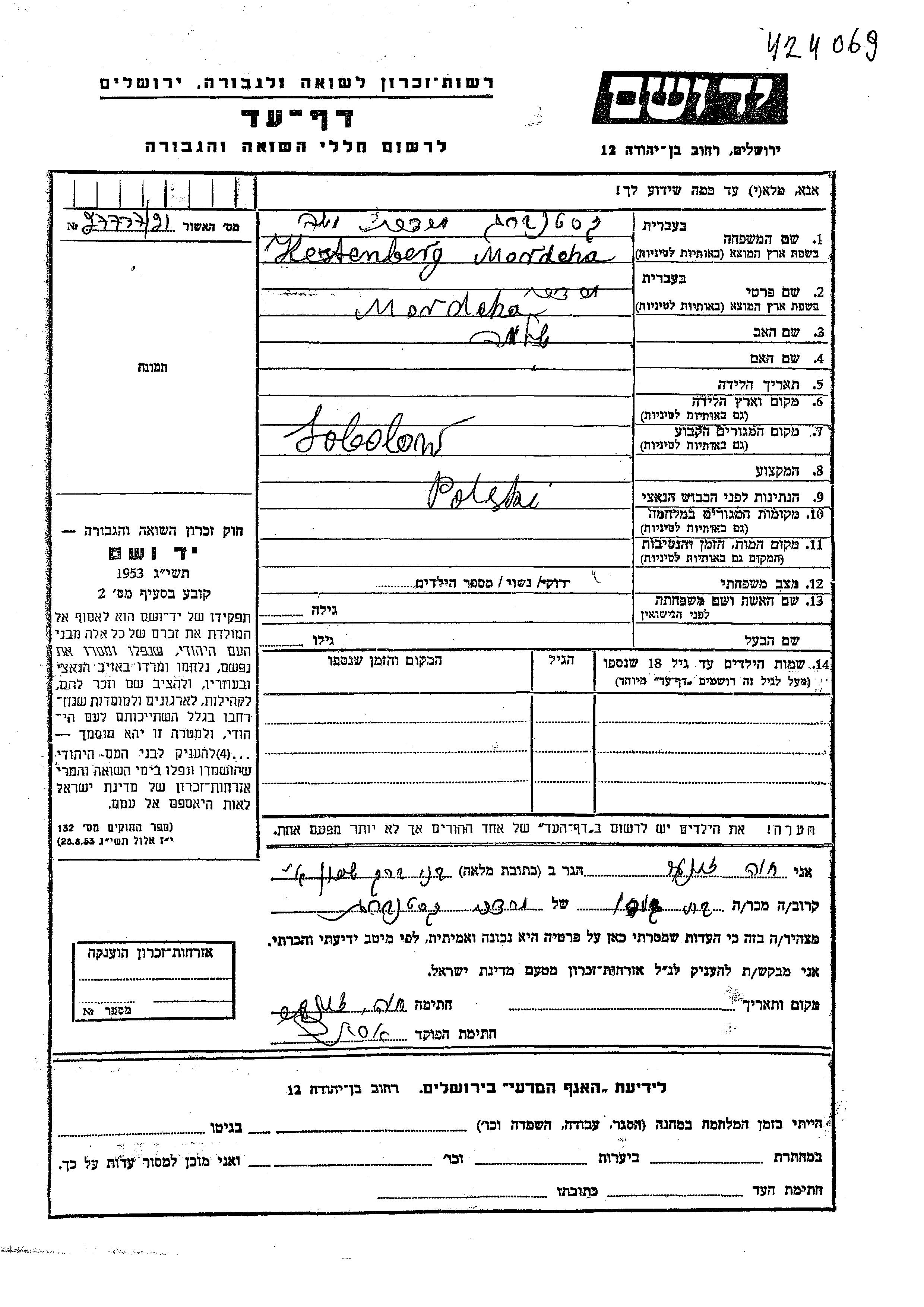 Mordcha Moshe Kestenberg wurde Er war der Sohn von Shlomo. Er war Verheiratet. Vor dem Zweiten Weltkrieg lebte er in Sobolow, Polen.