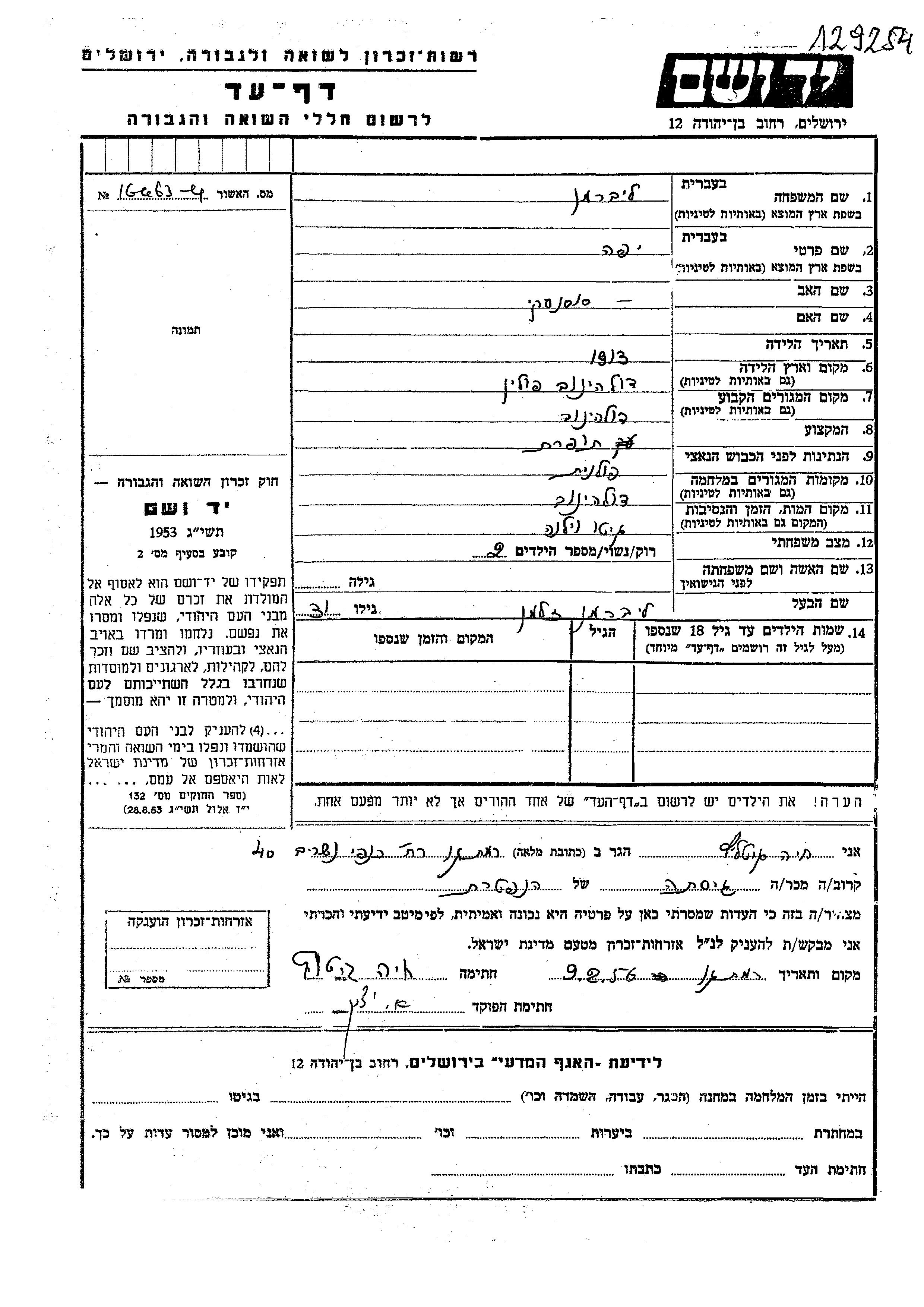 Yafa wurde in der Schoah ermordet. Todesort: Wilno, Polen.