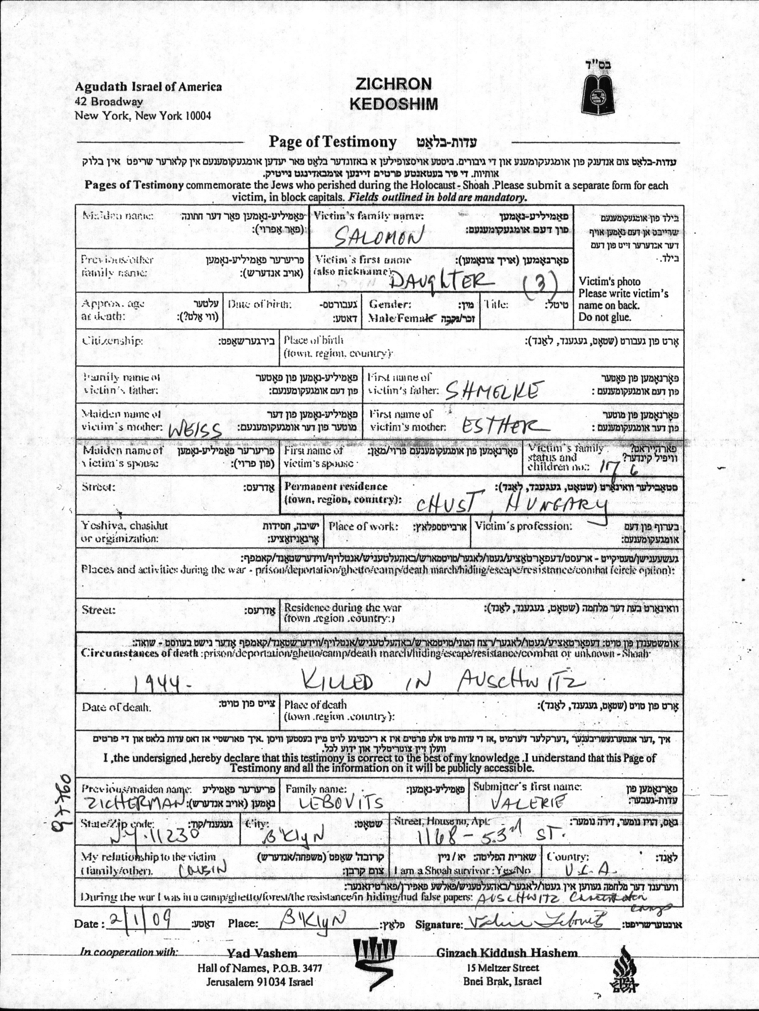 Stadt/Ortschaft oder Lager/Ghetto oder Bezirk/Region oder Land