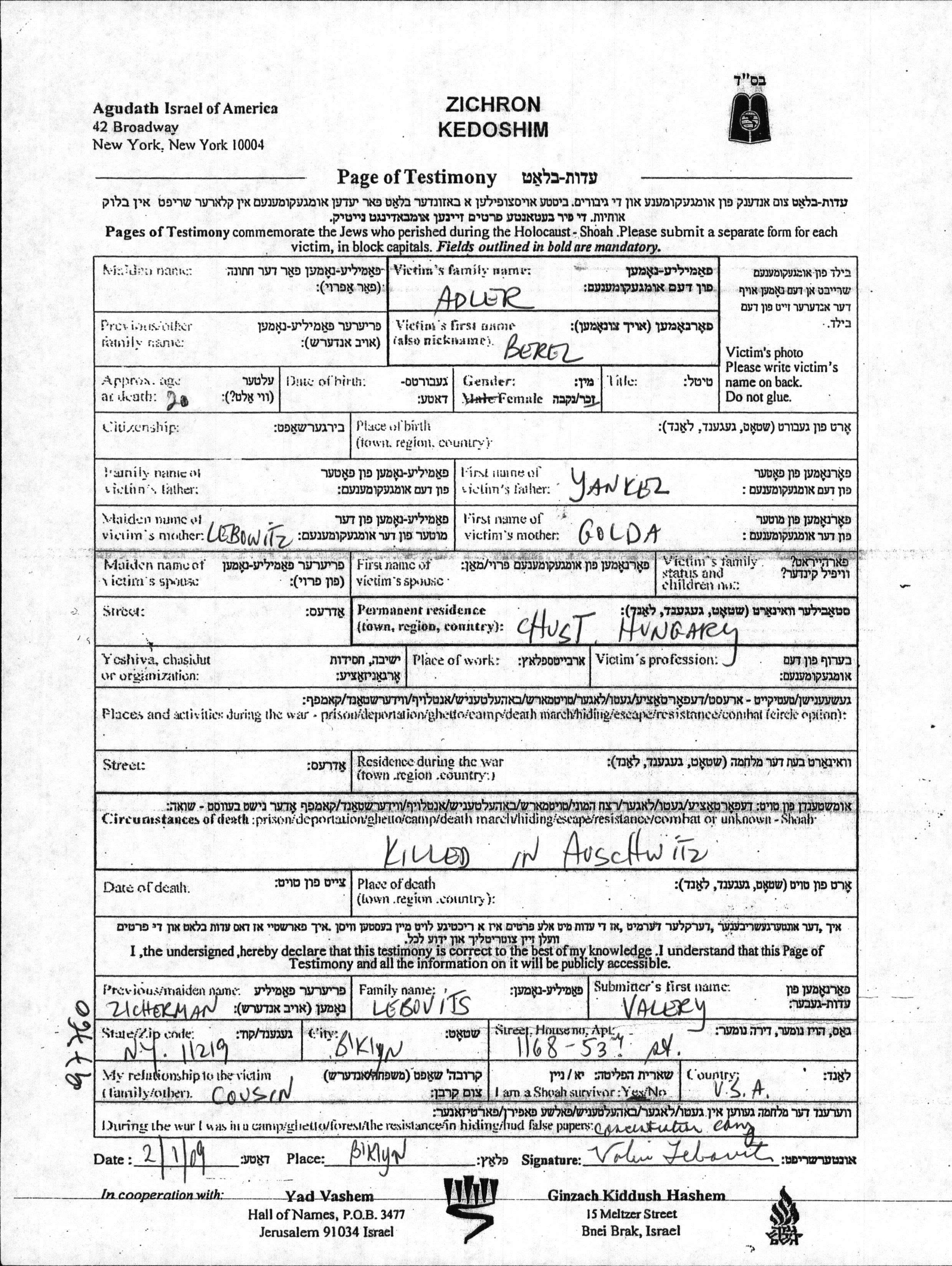 Suche nach einem Todesjahr im Zeitraum der Holocaust: 1933 bis 1945. Bitte wählen Sie 'Exakt' im Auswahlmenü, um nur nach einem einzelnen Jahr zu suchen, alternativ können Sie die flexibleren Optionen '+/- 2 Jahre' oder '+/- 5 Jahre' wählen.