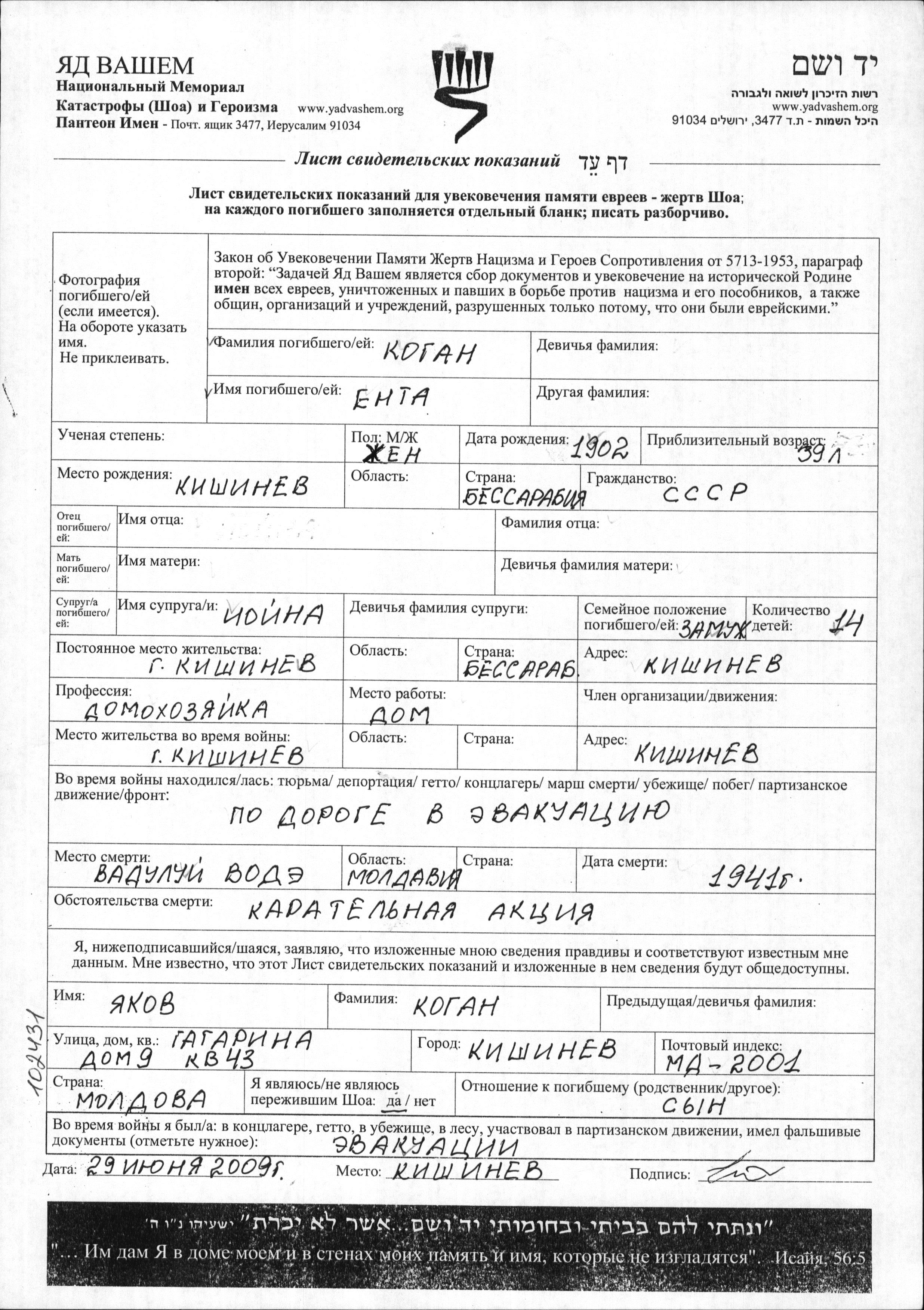 Juden wurden in der Schoah auf verschiedenste Weisen ermordet, unter anderem: Vergasen, Erschiessen, lebendig verbrannt werden, lebendig begraben werden, Tod durch Erschöpfung durch Zwangsarbeit, Epidemien, mangels jeder hygienischer Bedingung oder dem Fehlen medizinischer Versorgung. Manche Juden nahmen sich das Leben, um der Festnahme und weiterer Verfolgung zu entgehen oder ihr hoffnungsloses, nicht nachlassendes Leiden zu beenden.