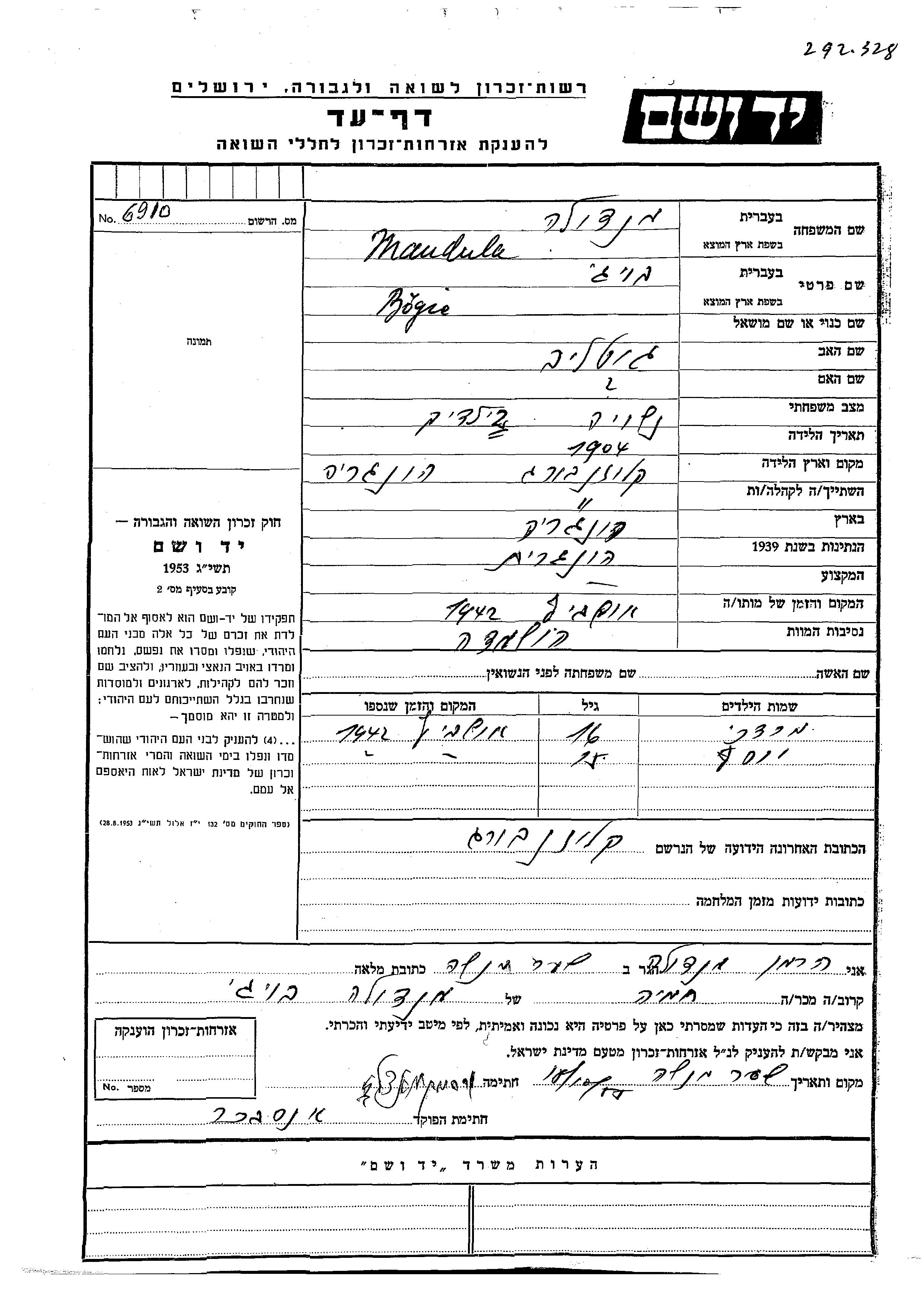 Boegie wurde in der Schoah ermordet. Todesort: Auschwitz, Polen im Jahr 1942.