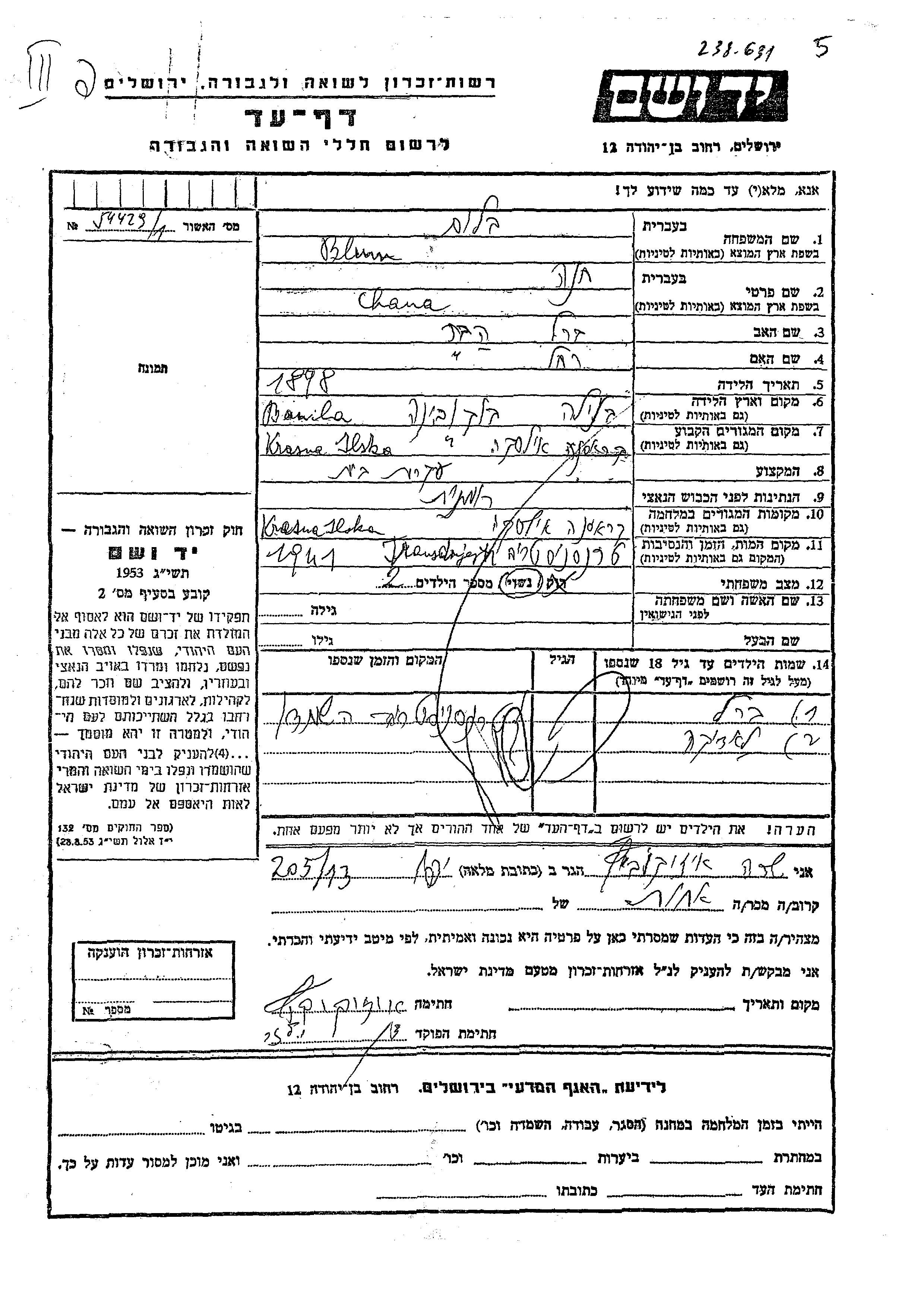 Berl Blum wurde Er war der Sohn von Chana, geb. Haber. Er war Kind. Vor dem Zweiten Weltkrieg lebte er in Crasna Ilschi, Rumänien. Während des Krieges war er in Crasna Ilschi, Rumänien.