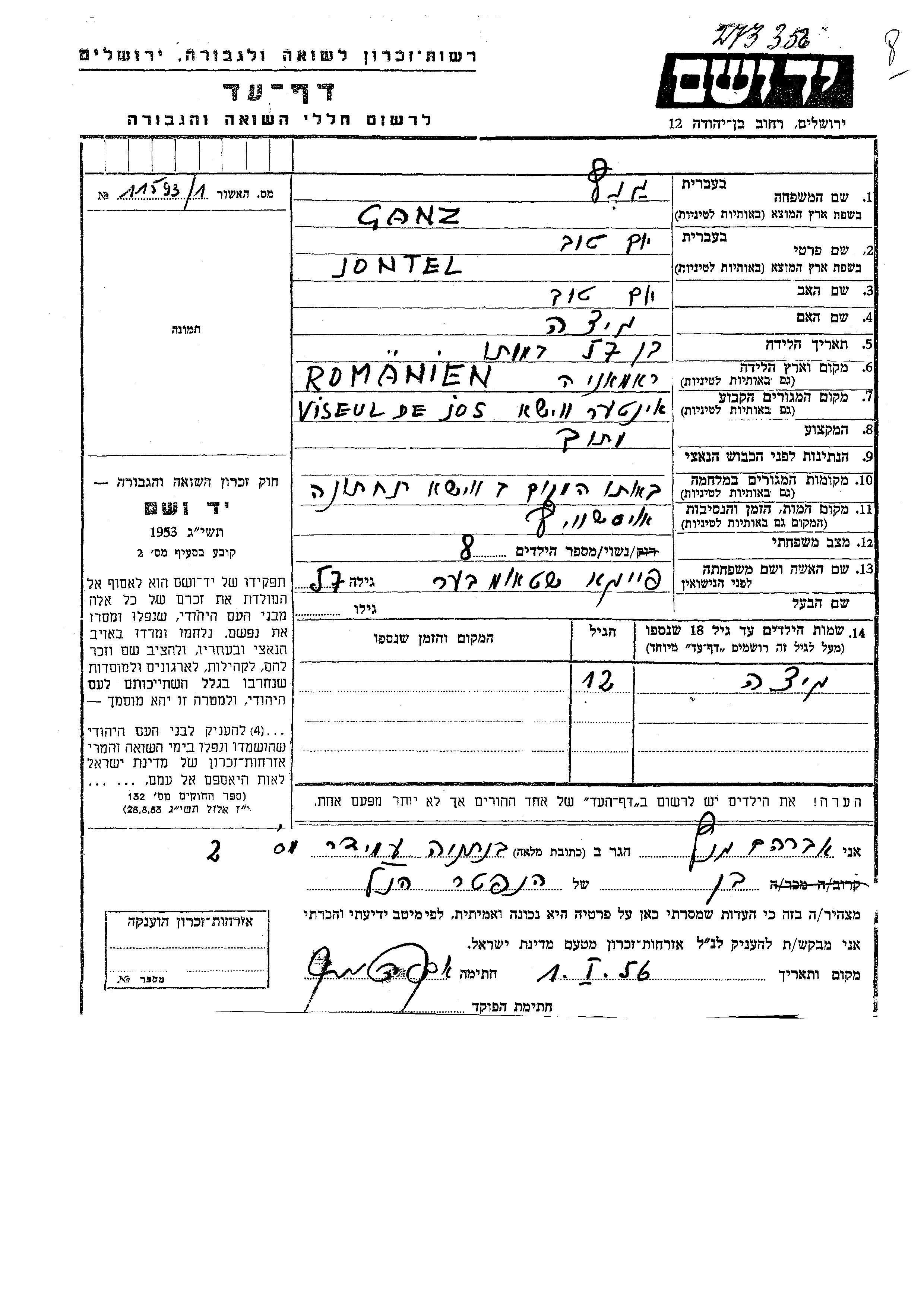 Mitza Ganz wurde Er/sie war der/ die Sohn/Tochter von Jontel und Feiga, geb. Shtambur. Er/Sie war Kind. Vor dem Zweiten Weltkrieg er/sie in Viseul de Sus, Rumänien. Während des Krieges war er/sie in Viseul de Sus, Rumänien.