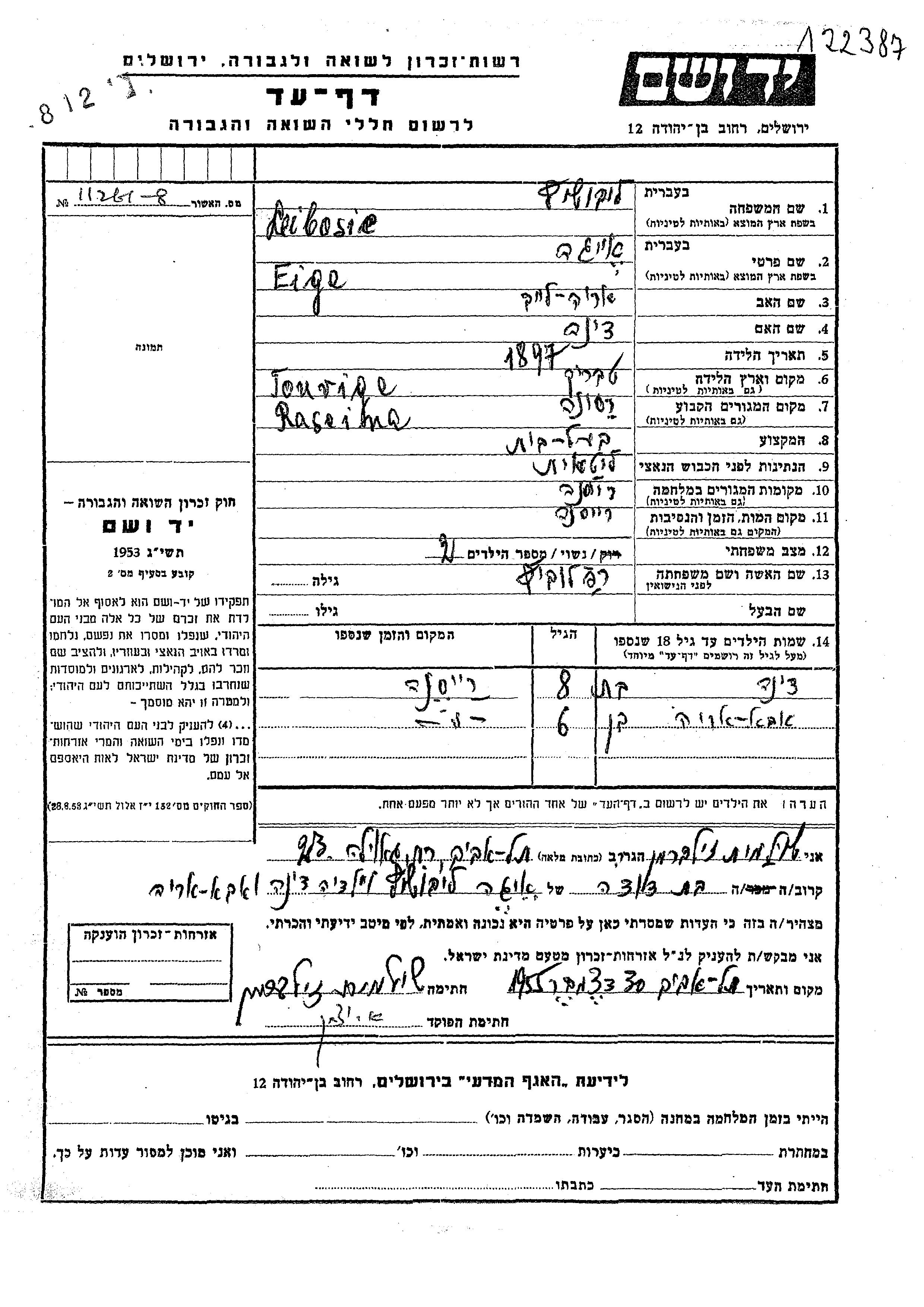 Eiga Leibosic, geb. Rafalovitz wurde im Jahr 1897 in Tovrik, Litauen geboren. Sie war die Tochter von Arie Leib und Dina. Sie war Hausbesitzer/-in und Verheiratet. Vor dem Zweiten Weltkrieg lebte sie in Raseinai, Litauen. Während des Krieges war sie in Raseinai, Litauen.