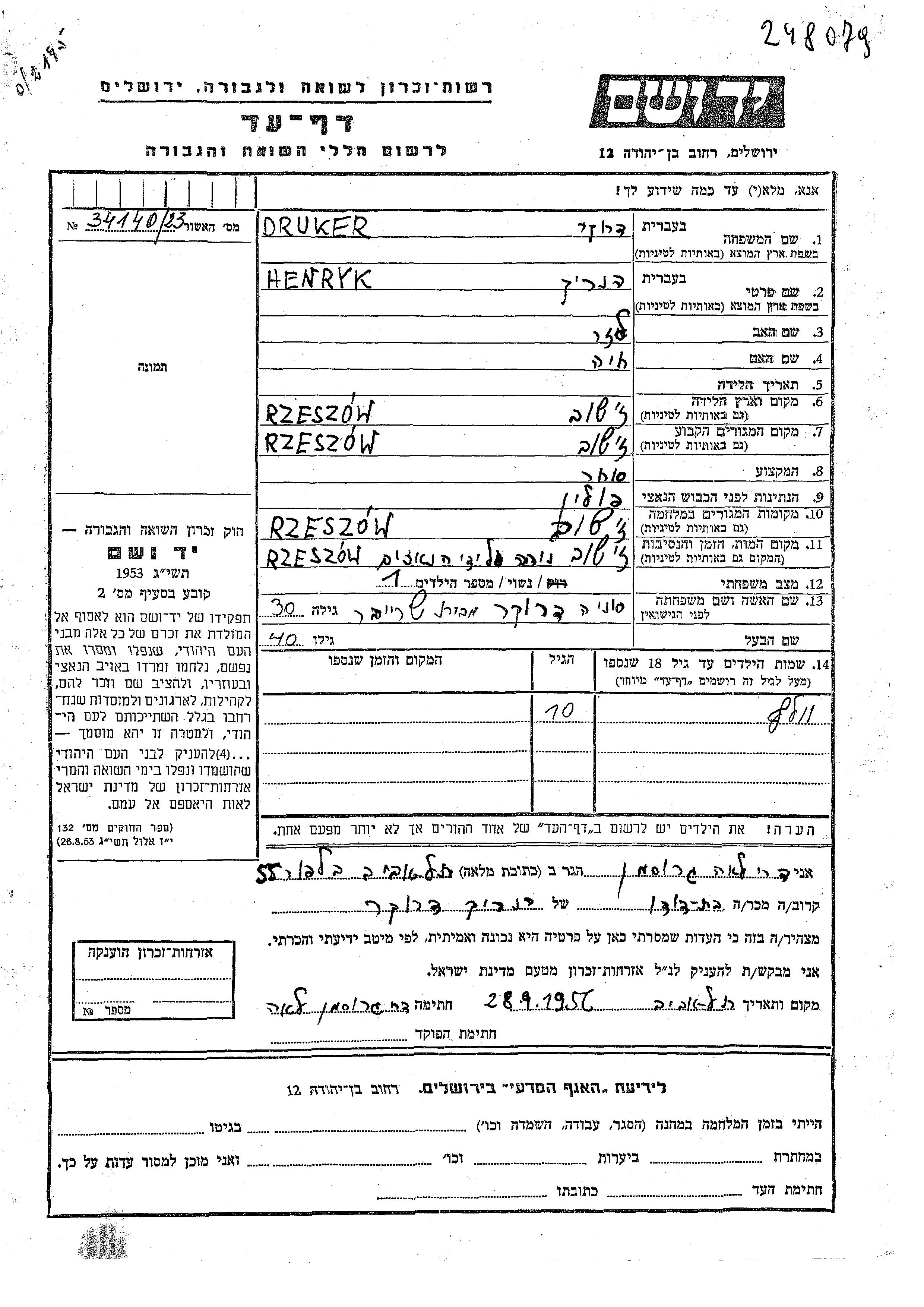 Druker Volf Rzeszow, Polen Gedenkblatt