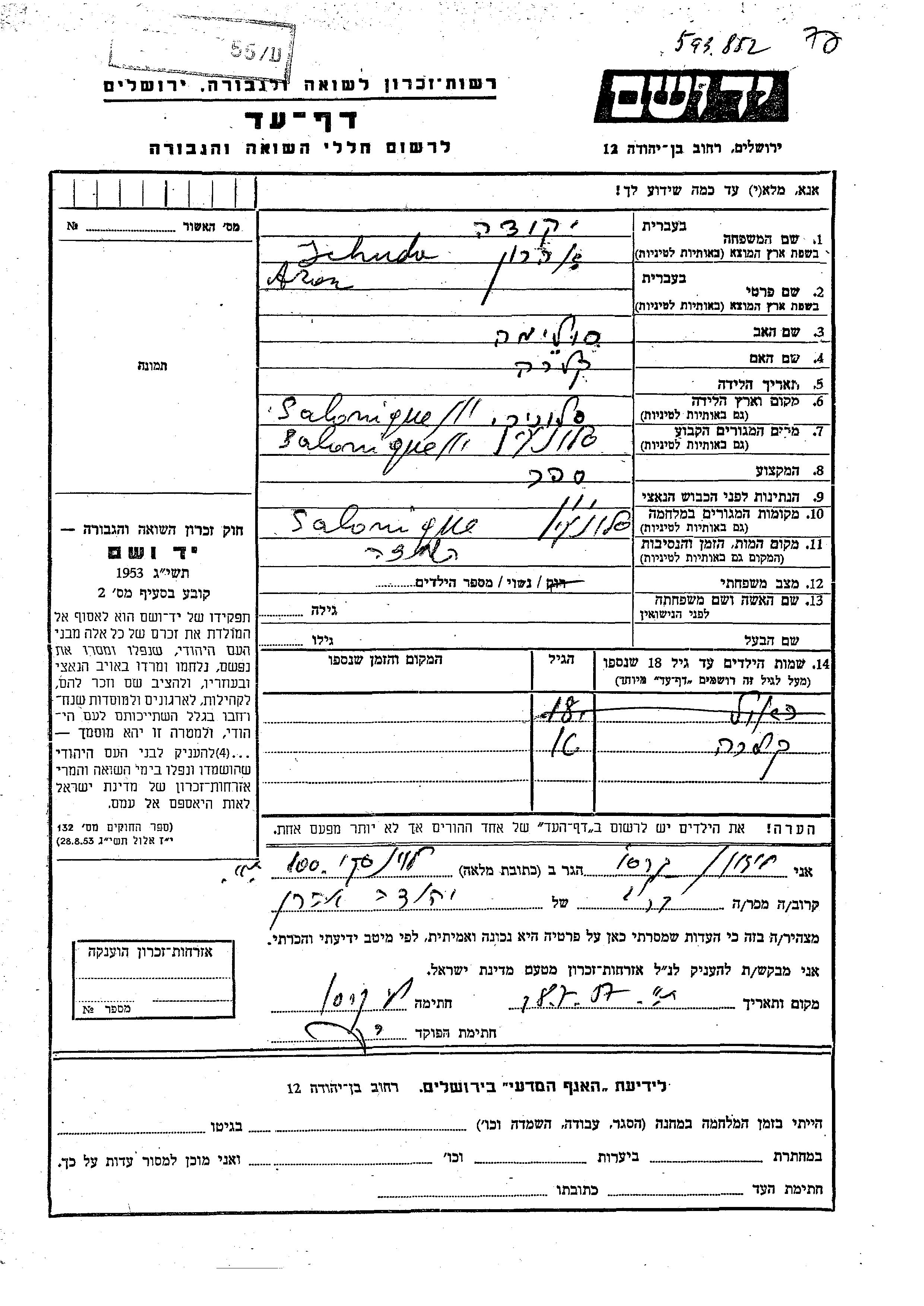 Jehuda Klara Saloniki, Griechenland Gedenkblatt