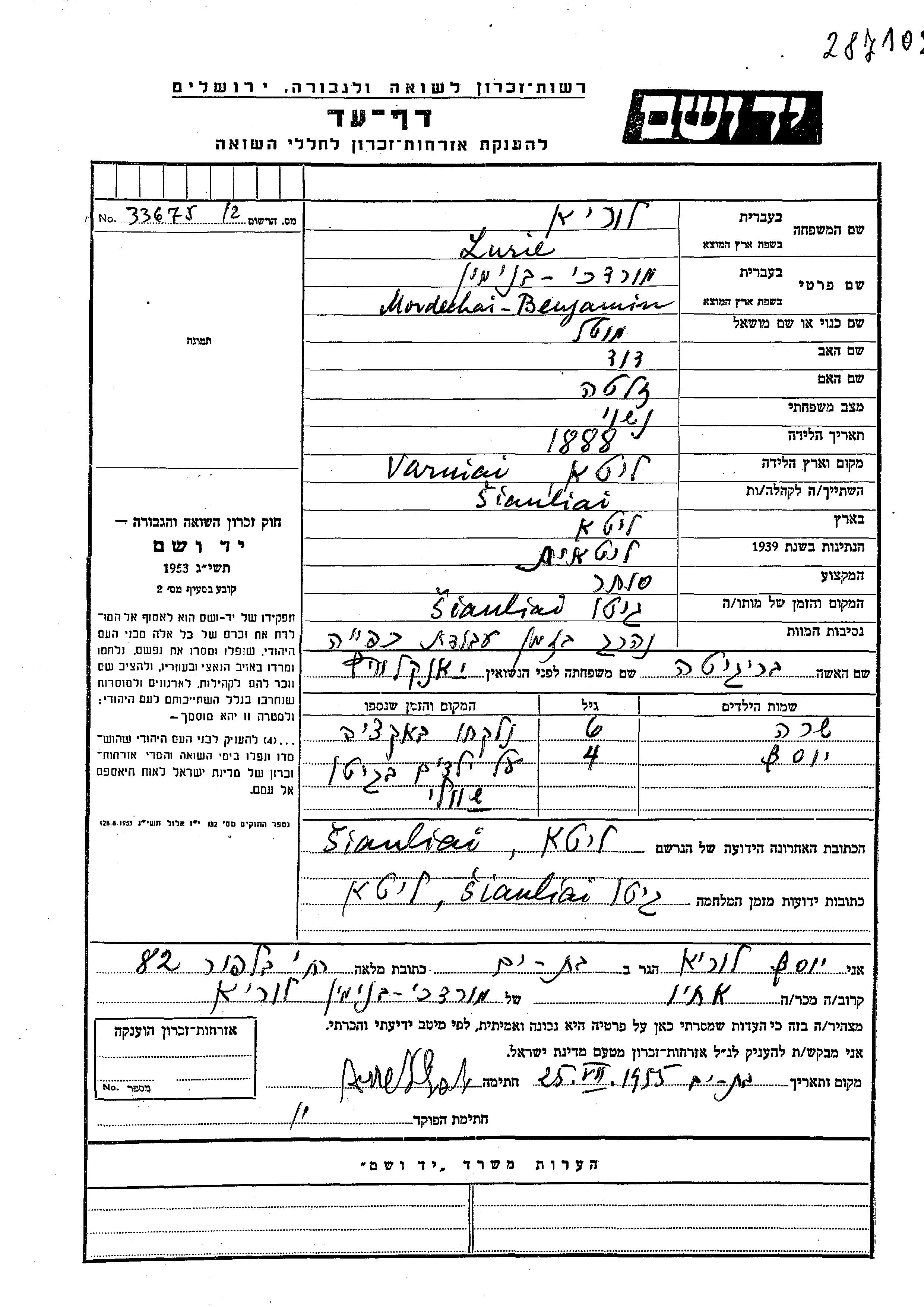Yosef Lurie wurde Er war der Sohn von Mordechai Benjamin und Brigita. Er war Kind.