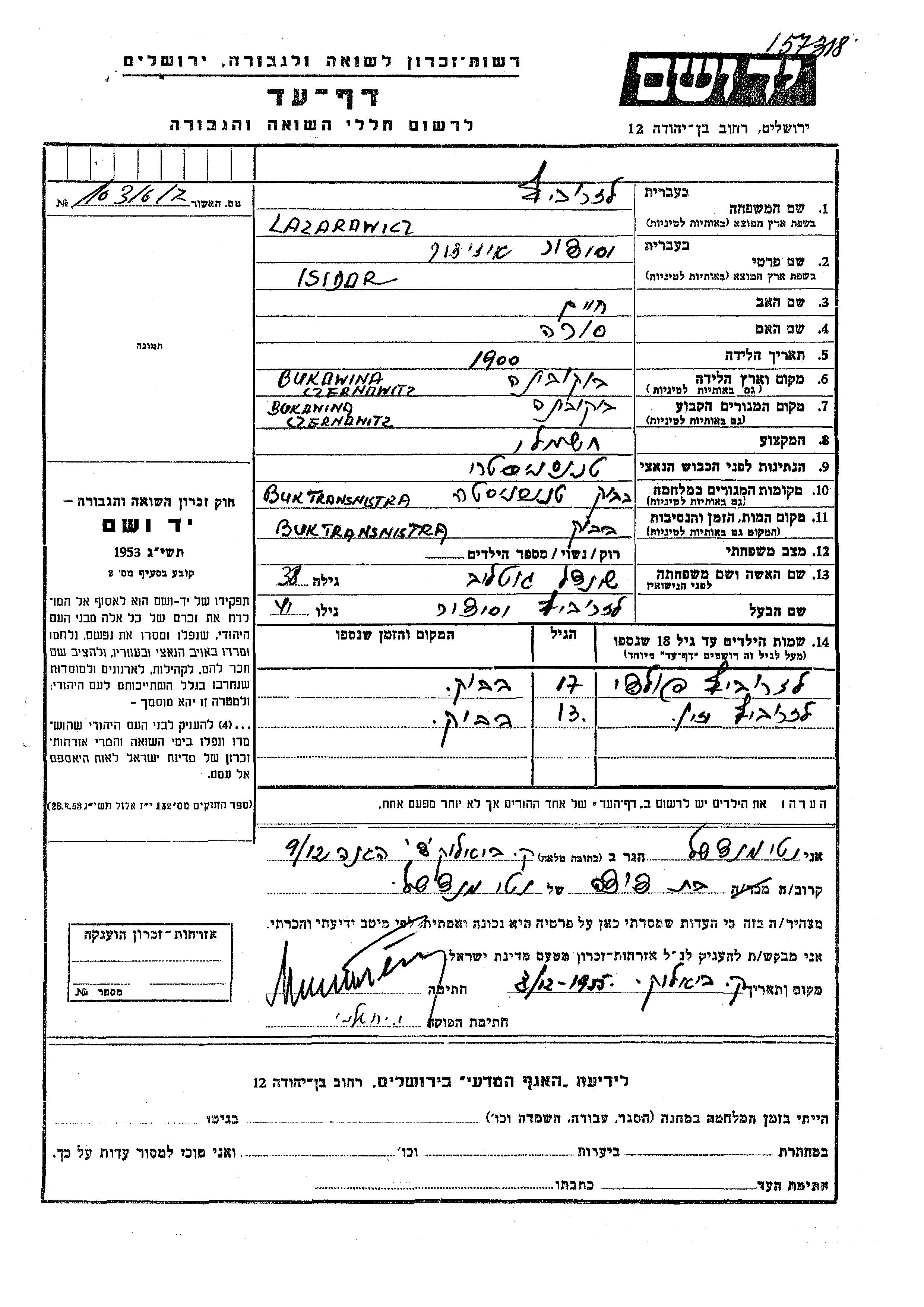 Poltzi Lazarowicz wurde Sie war die Tochter von Isidor und Sheindl, geb. Gotlib. Sie war Kind. Vor dem Zweiten Weltkrieg lebte sie in Czernowitz, Rumänien. Während des Krieges war sie in Transnistria, Ukraine (UdSSR).