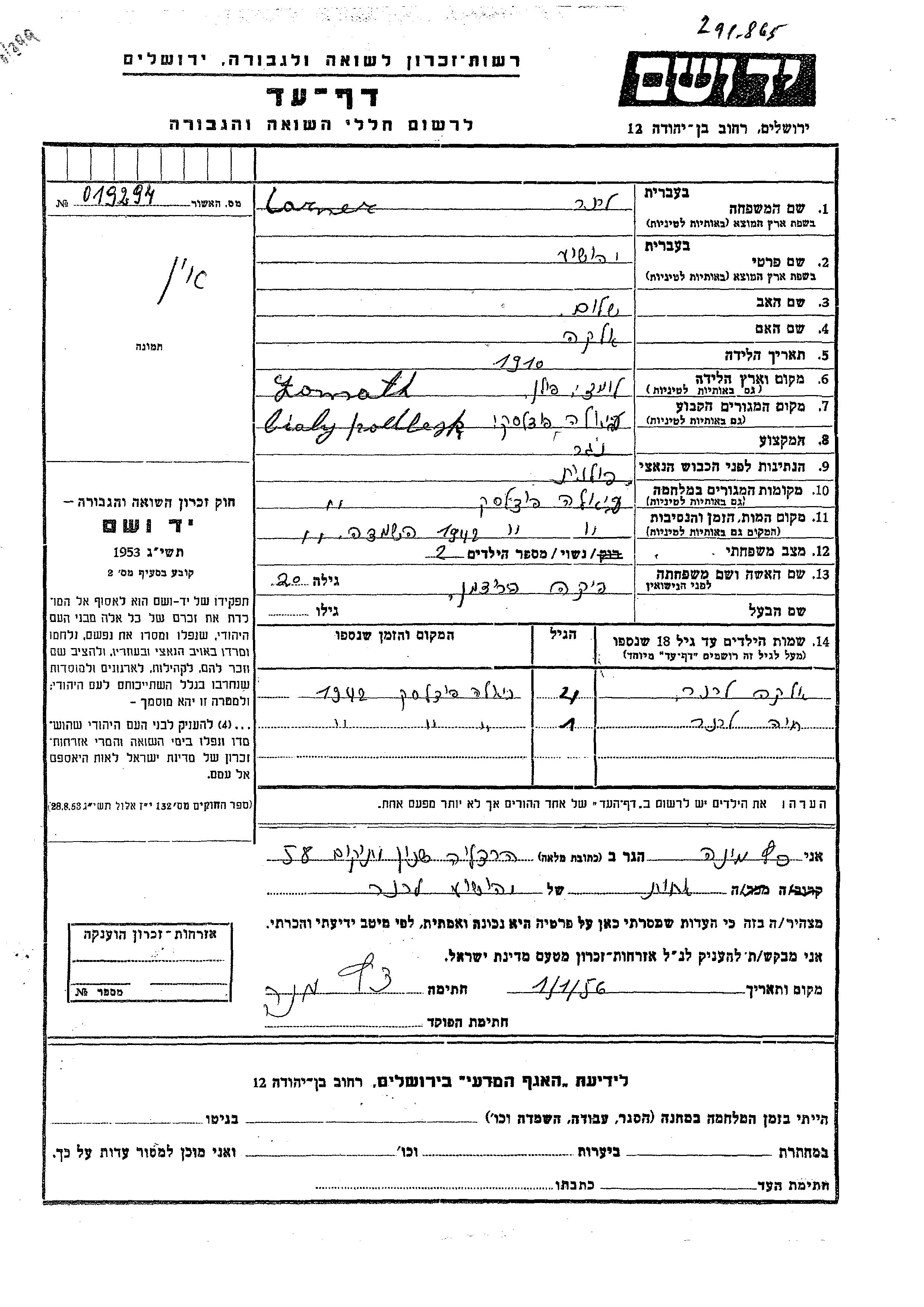 Elka Larner wurde Er/sie war der/ die Sohn/Tochter von Yehoshua und Feika, geb. Fridman. Vor dem Zweiten Weltkrieg er/sie in Biala Podlaska, Polen. Während des Krieges war er/sie in Biala Podlaska, Polen.