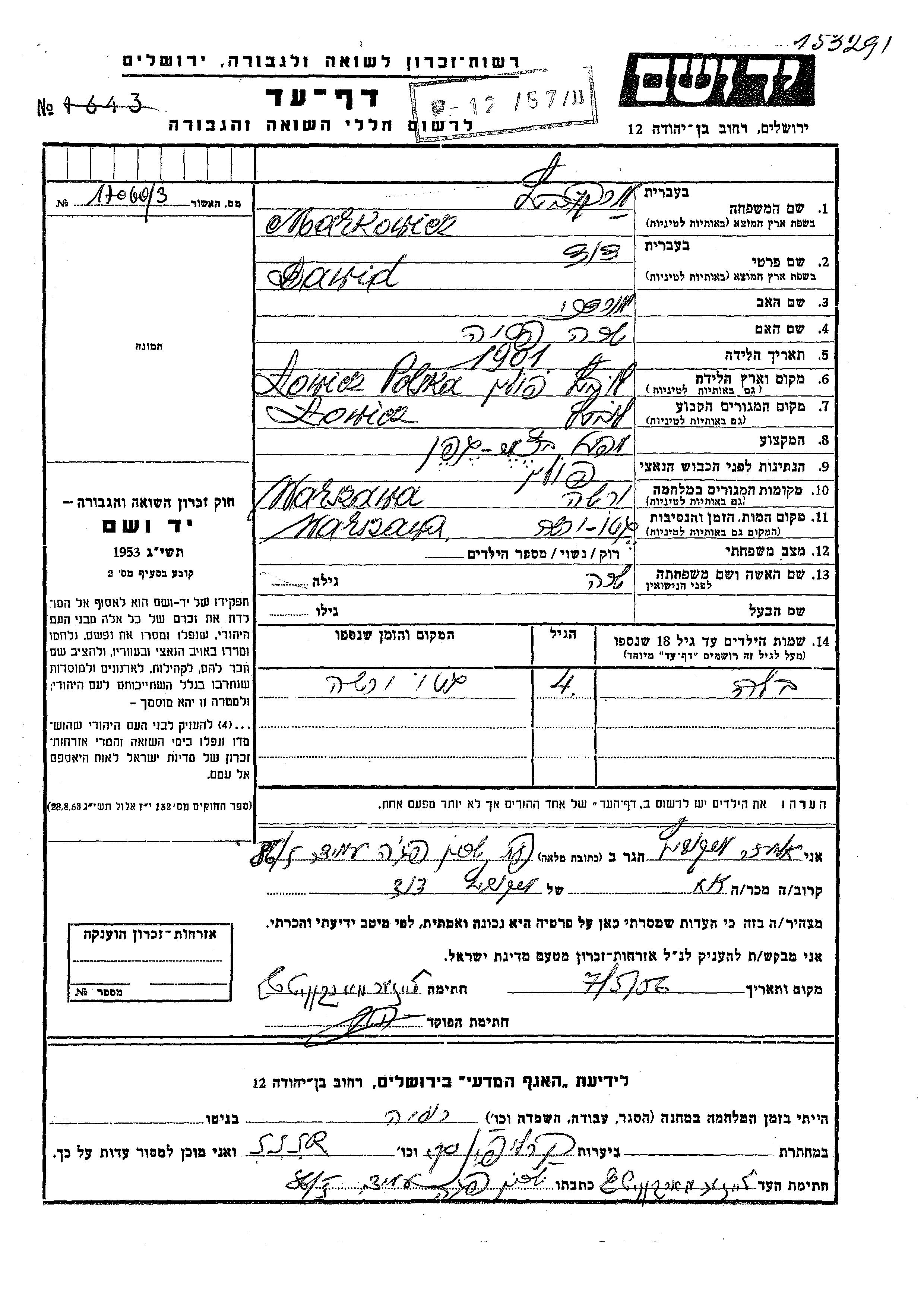 Bela Markowicz wurde Er/sie war der/ die Sohn/Tochter von Dawid. Er/Sie war Kind. Vor dem Zweiten Weltkrieg er/sie in Lowicz, Polen. Während des Krieges war er/sie in Warszawa, Polen.