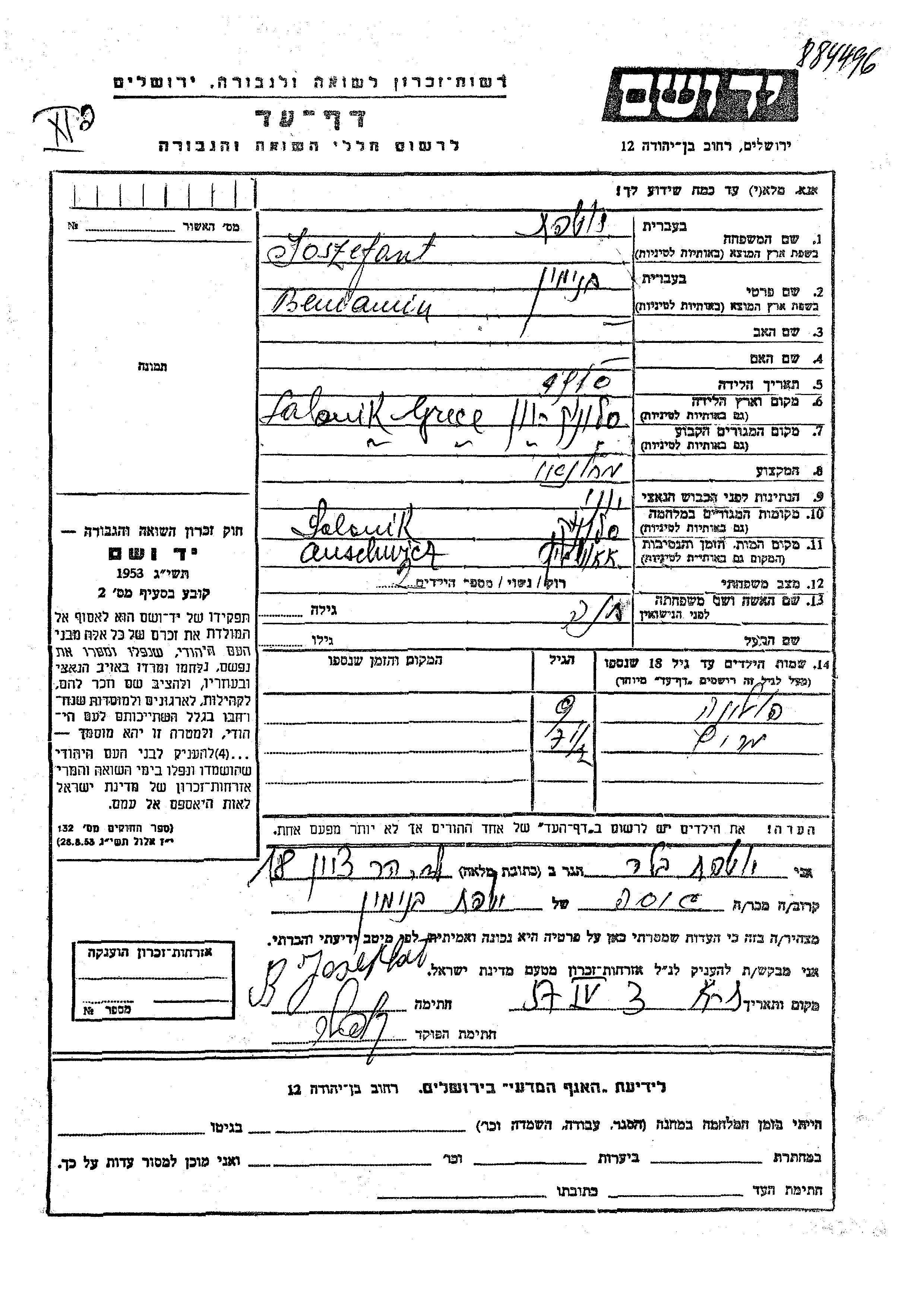 Joszefant Iehoshafat Polina Saloniki, Griechenland Gedenkblatt