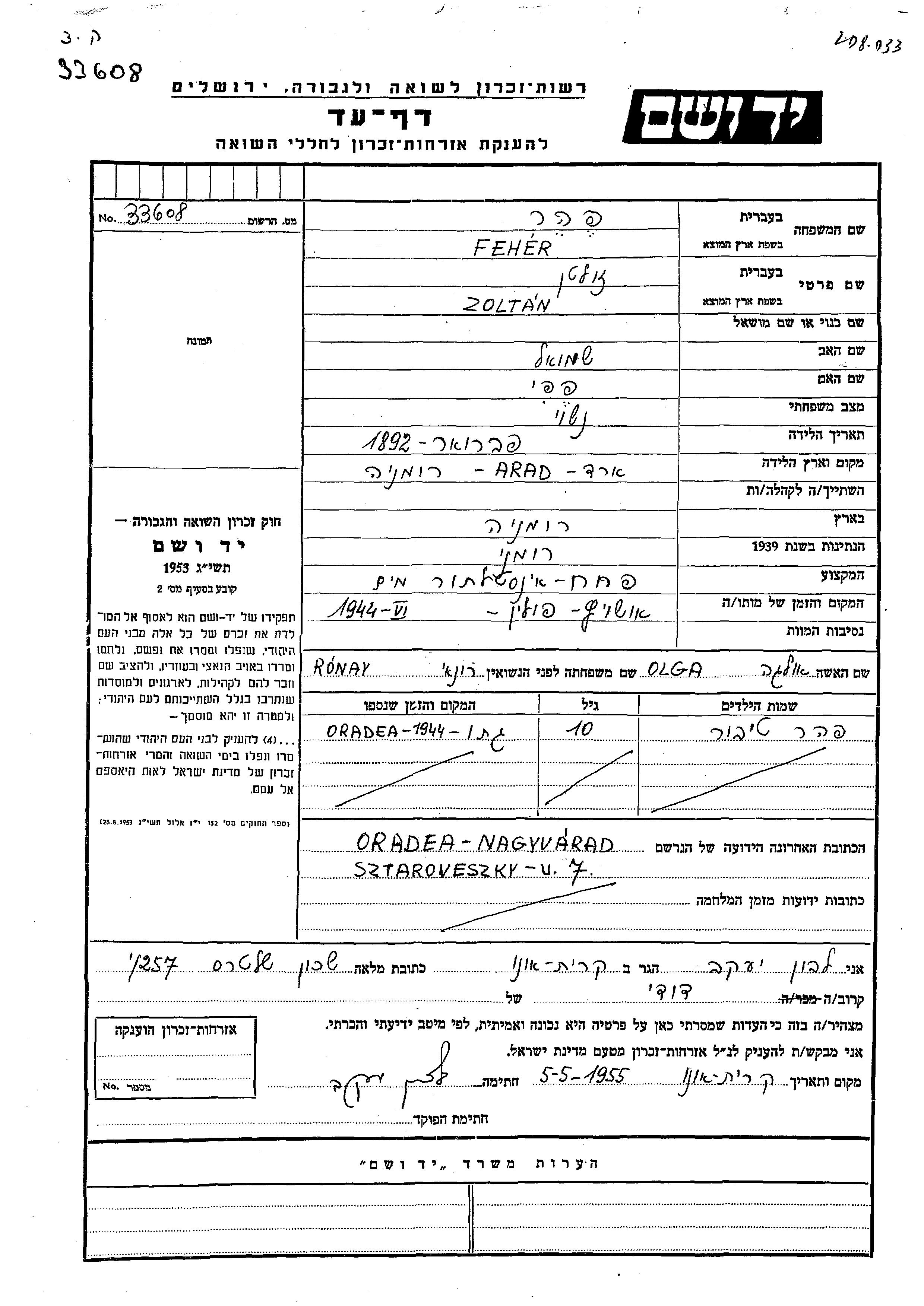 Tibor Feher wurde Er war der Sohn von Zoltan und Olga, geb. Ronay. Er war Kind. Vor dem Zweiten Weltkrieg lebte er in Oradea, Rumänien. Während des Krieges war er in Oradea, Rumänien.