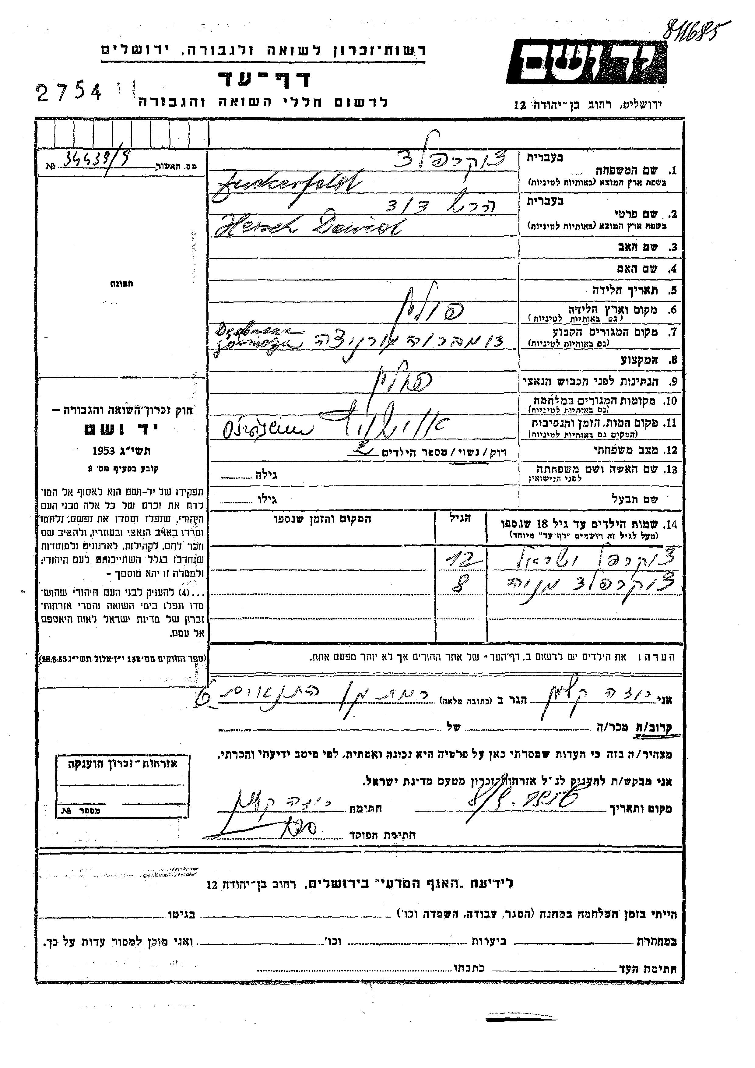 Mania Zuckerfeld wurde Sie war die Tochter von Hersch Dawid. Sie war Kind. Vor dem Zweiten Weltkrieg lebte sie in Dabrowa Gornicza, Polen. Während des Krieges war sie in Polen.