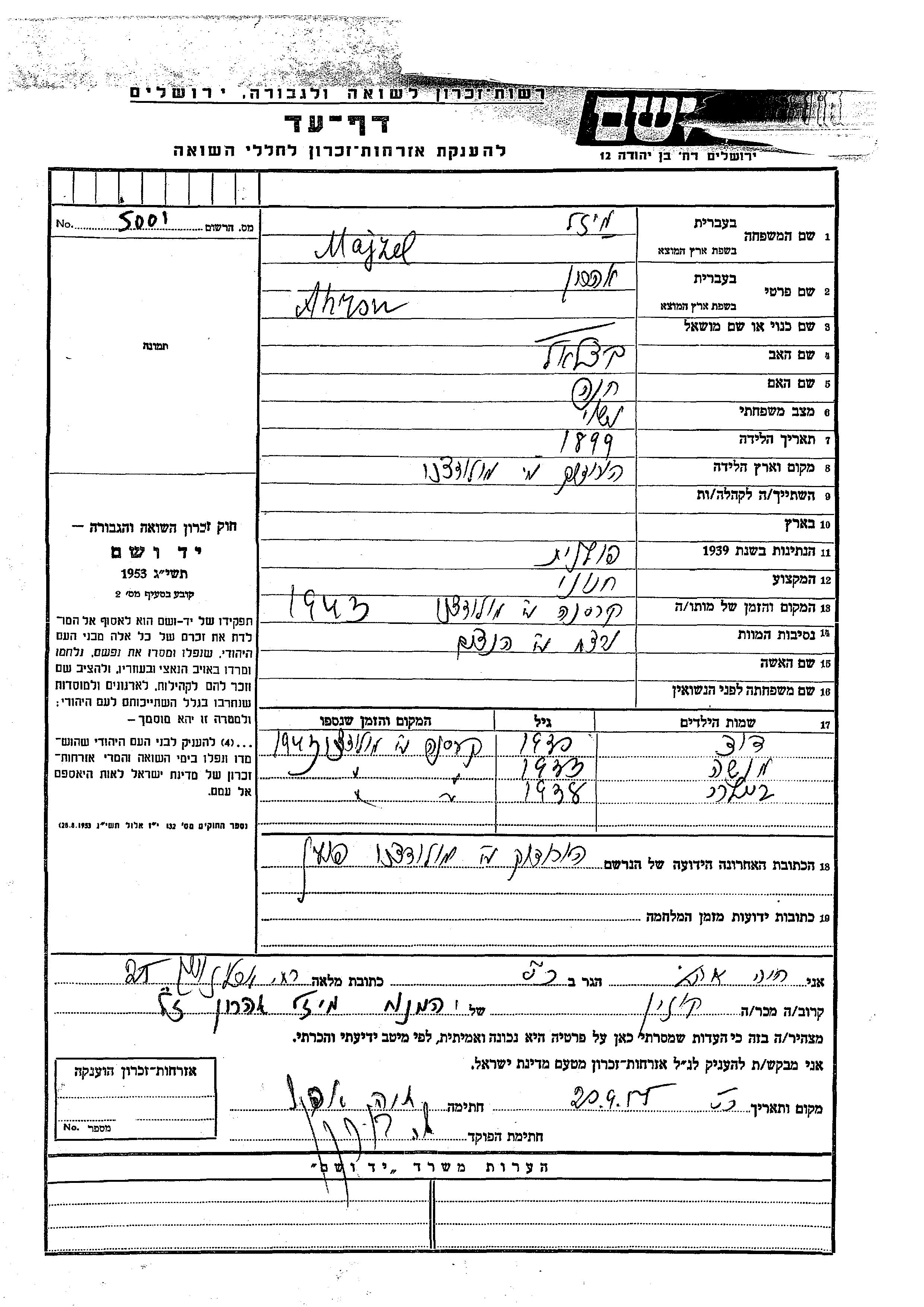 Suche nach einem Todesjahr im Zeitraum der Holocaust: 1933 bis 1945. Bitte wählen Sie 'Exakt' im Auswahlmenü, um nur nach einem einzelnen Jahr zu suchen, alternativ können Sie die flexibleren Optionen '+/- 2 Jahre' oder '+/- 5 Jahre' wählen.