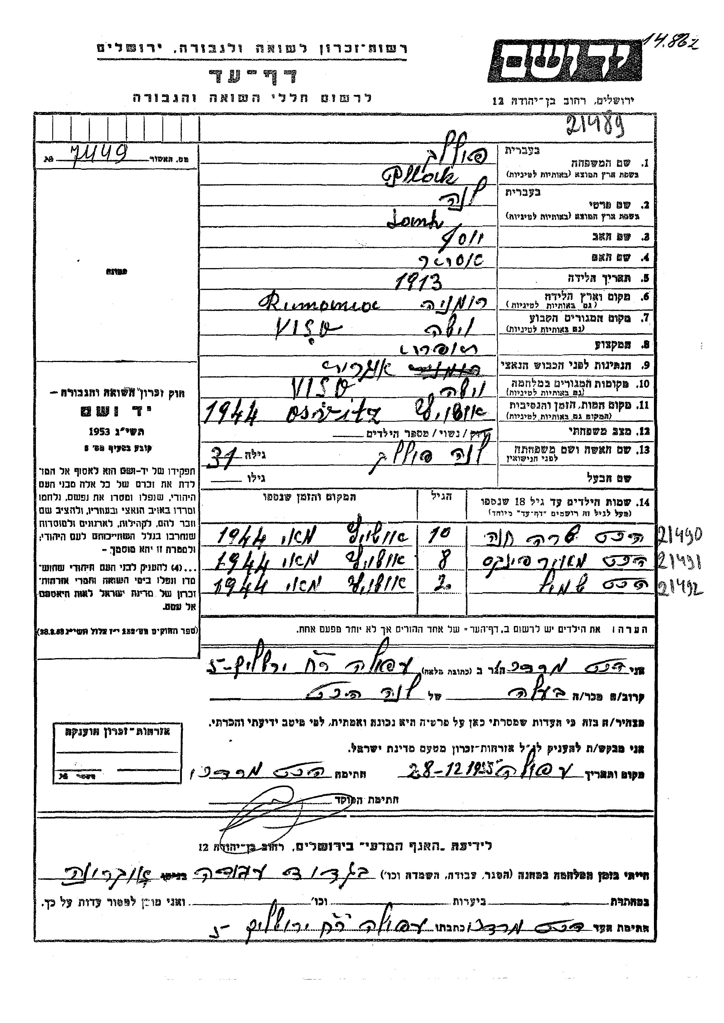 Meir Pinkhas Pollak Hecht wurde Er war der Sohn von Mordekhai und Lana, geb. Polak. Er war Kind. Vor dem Zweiten Weltkrieg lebte er in Viso, Rumänien. Während des Krieges war er in Viso, Rumänien.