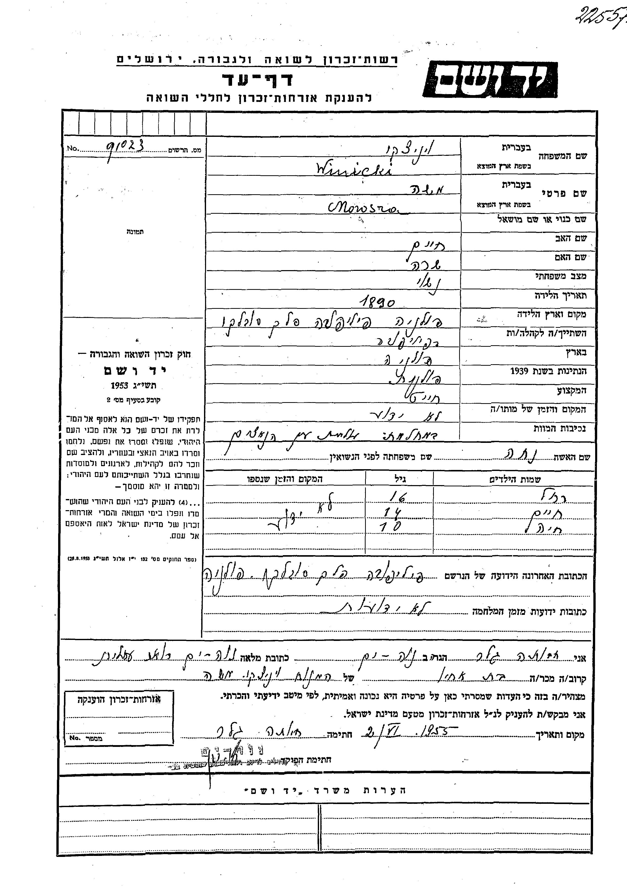 Khaia Winicki wurde Sie war die Tochter von Mowsza und Nekha. Sie war Kind. Vor dem Zweiten Weltkrieg lebte sie in Filipow, Polen.