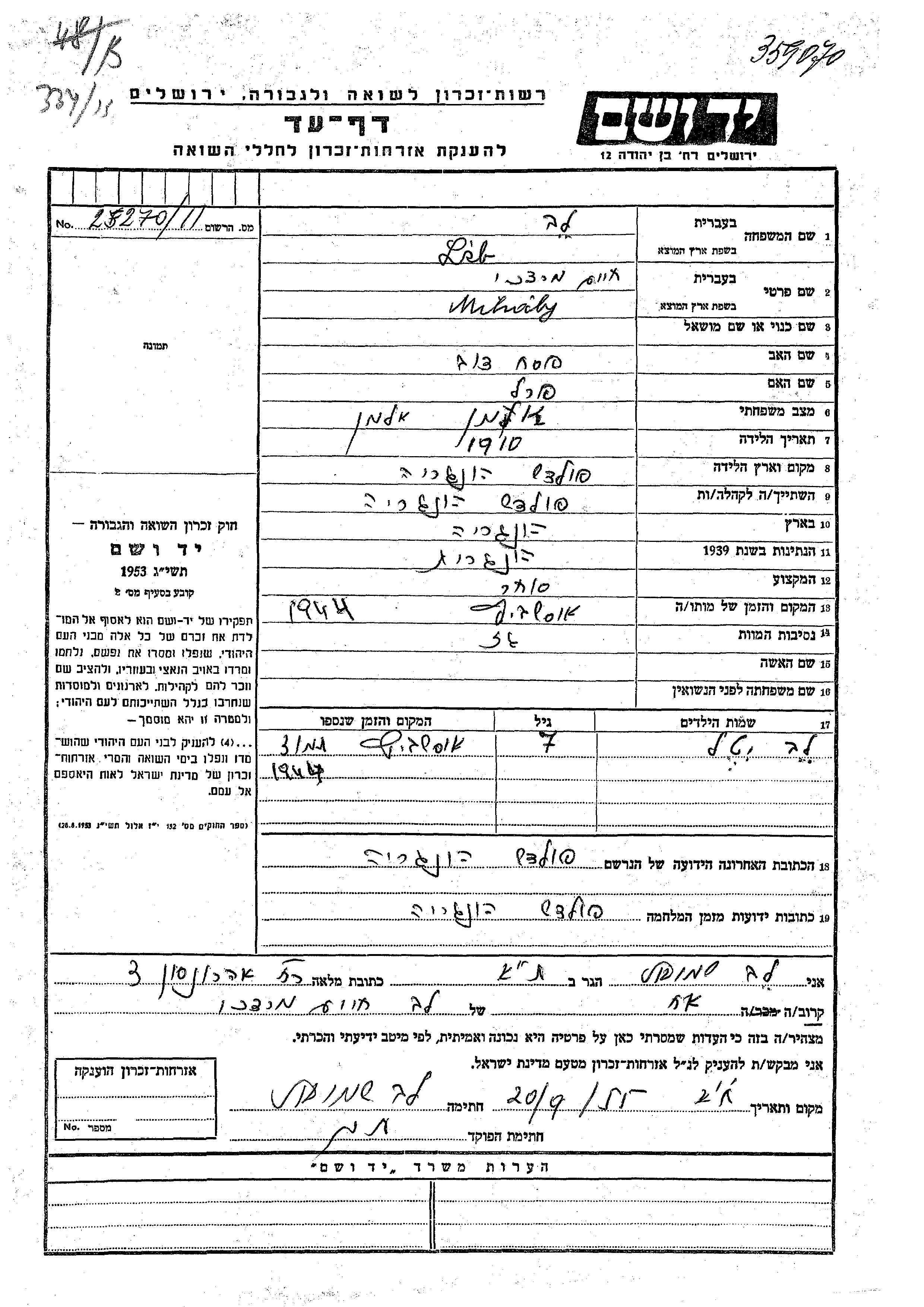 Lib Lev Ietel Foldes, Ungarn Gedenkblatt