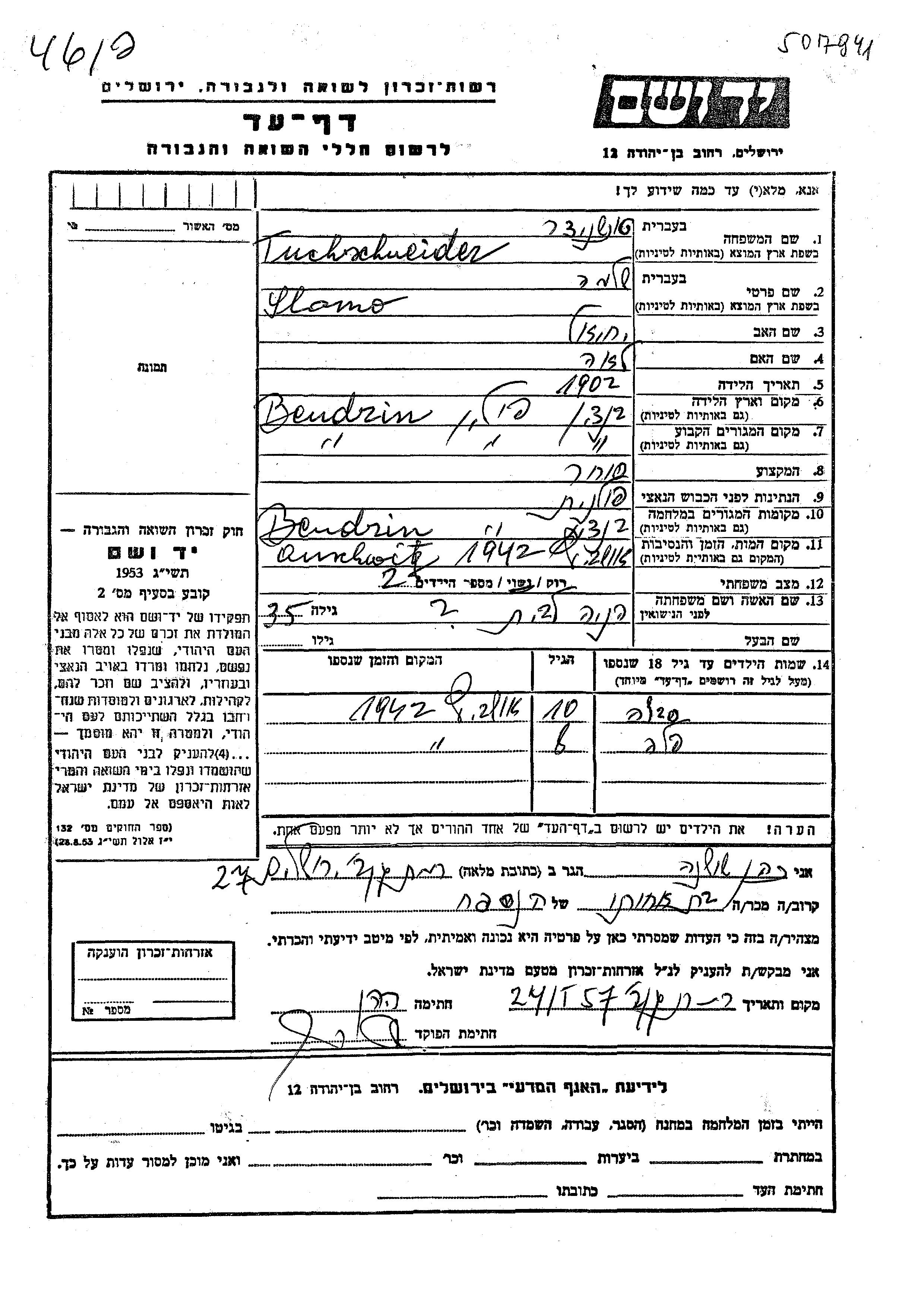 Tuchschneider Fela Bendin, Polen Gedenkblatt