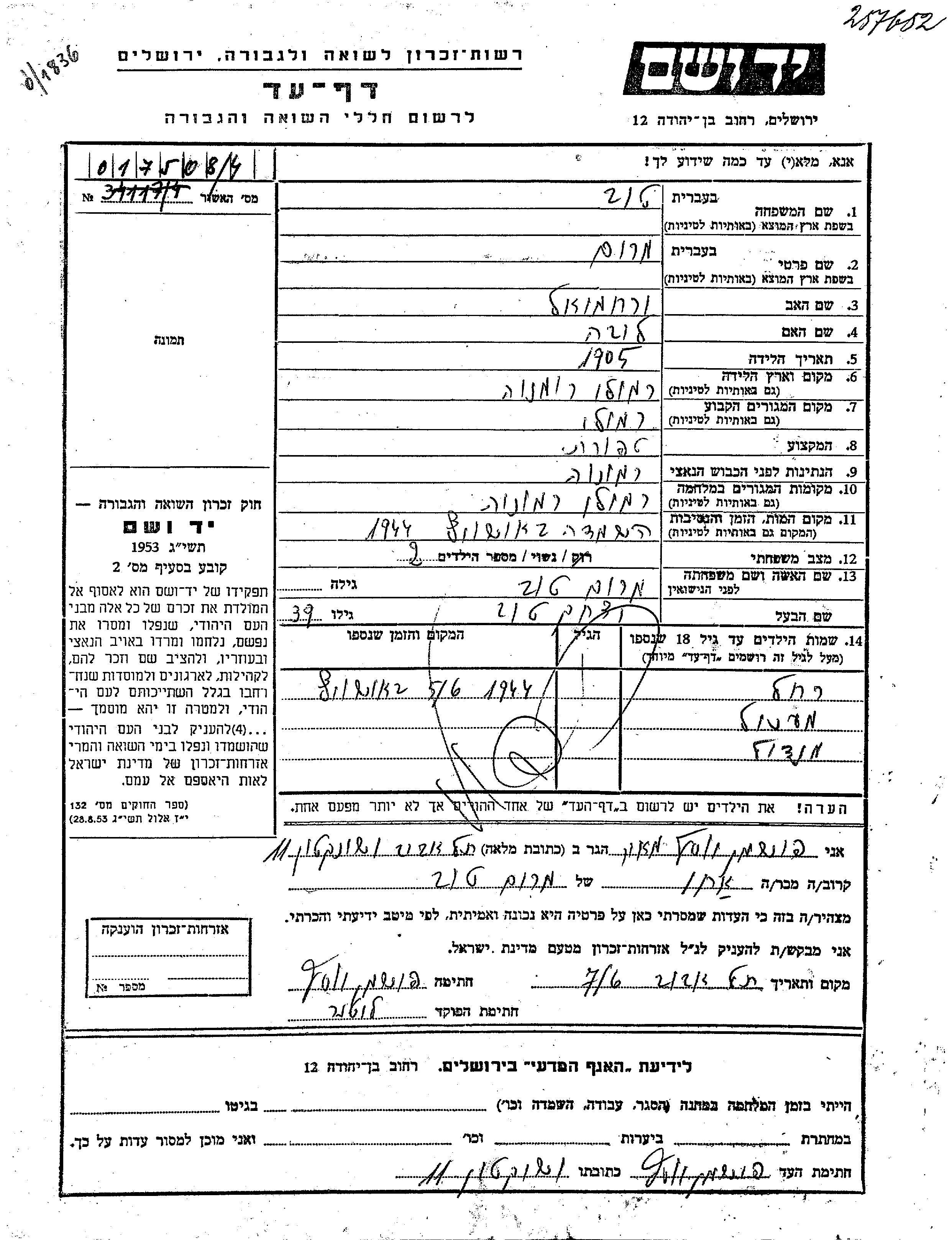 Tob Rakhel unbekannter Ort, Gedenkblatt