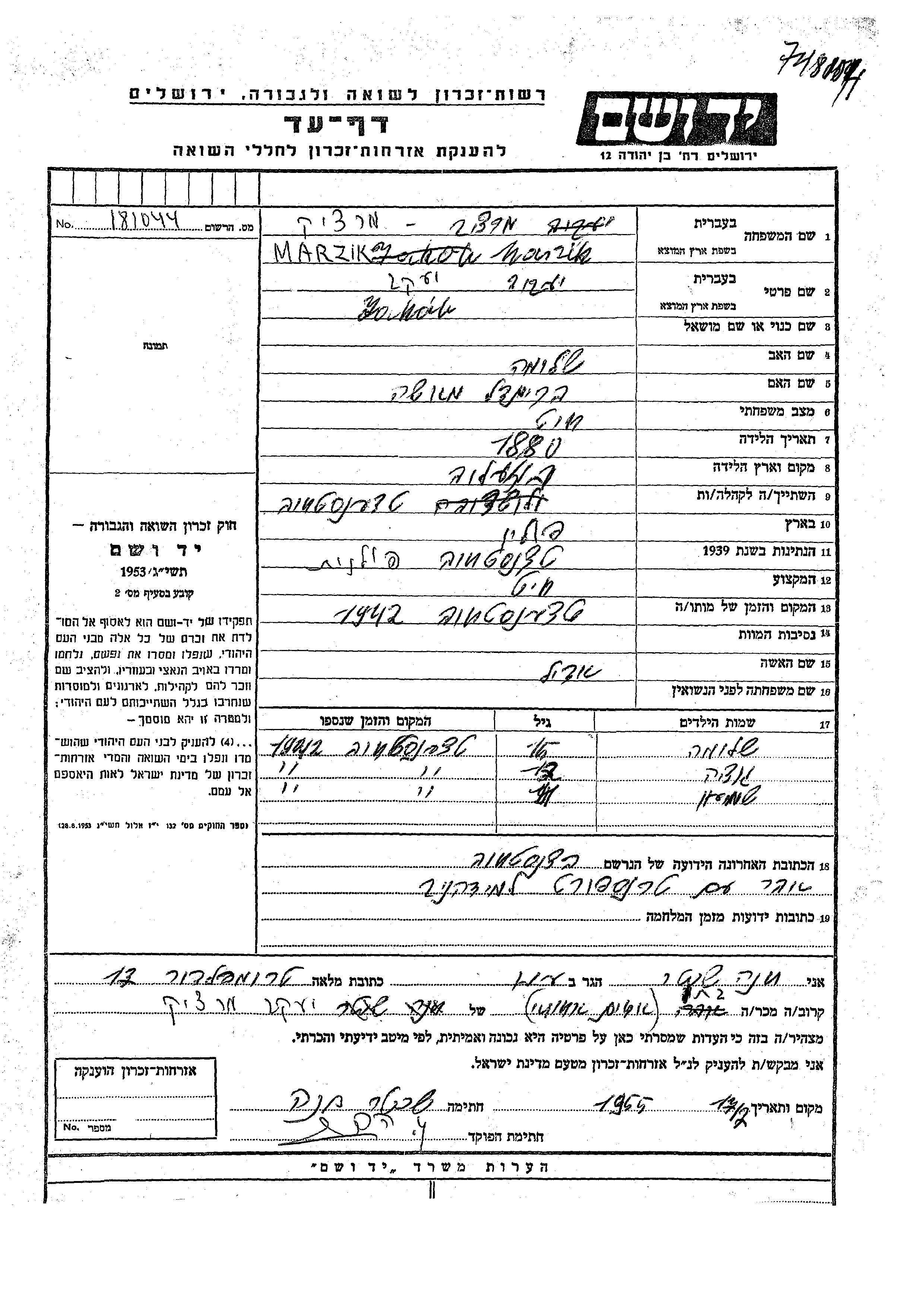 Gucha Marzik Marshov Marchik Monzik wurde Sie war die Tochter von Jakow und Adela. Sie war Kind. Vor dem Zweiten Weltkrieg lebte sie in Czestochow, Polen. Während des Krieges war sie in Czestochow, Polen.