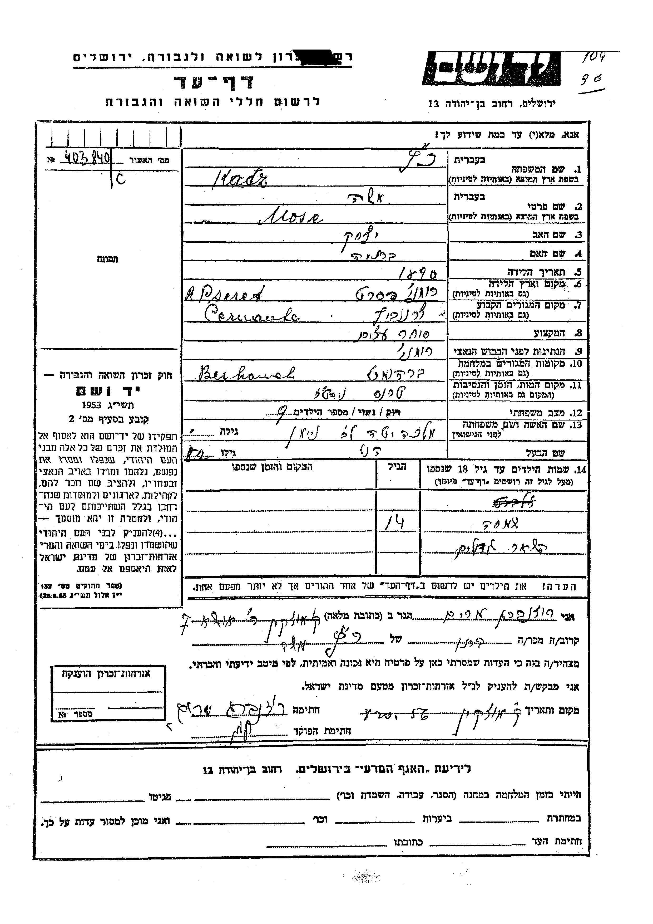 Aufenthaltsort während des Krieges/Schoah