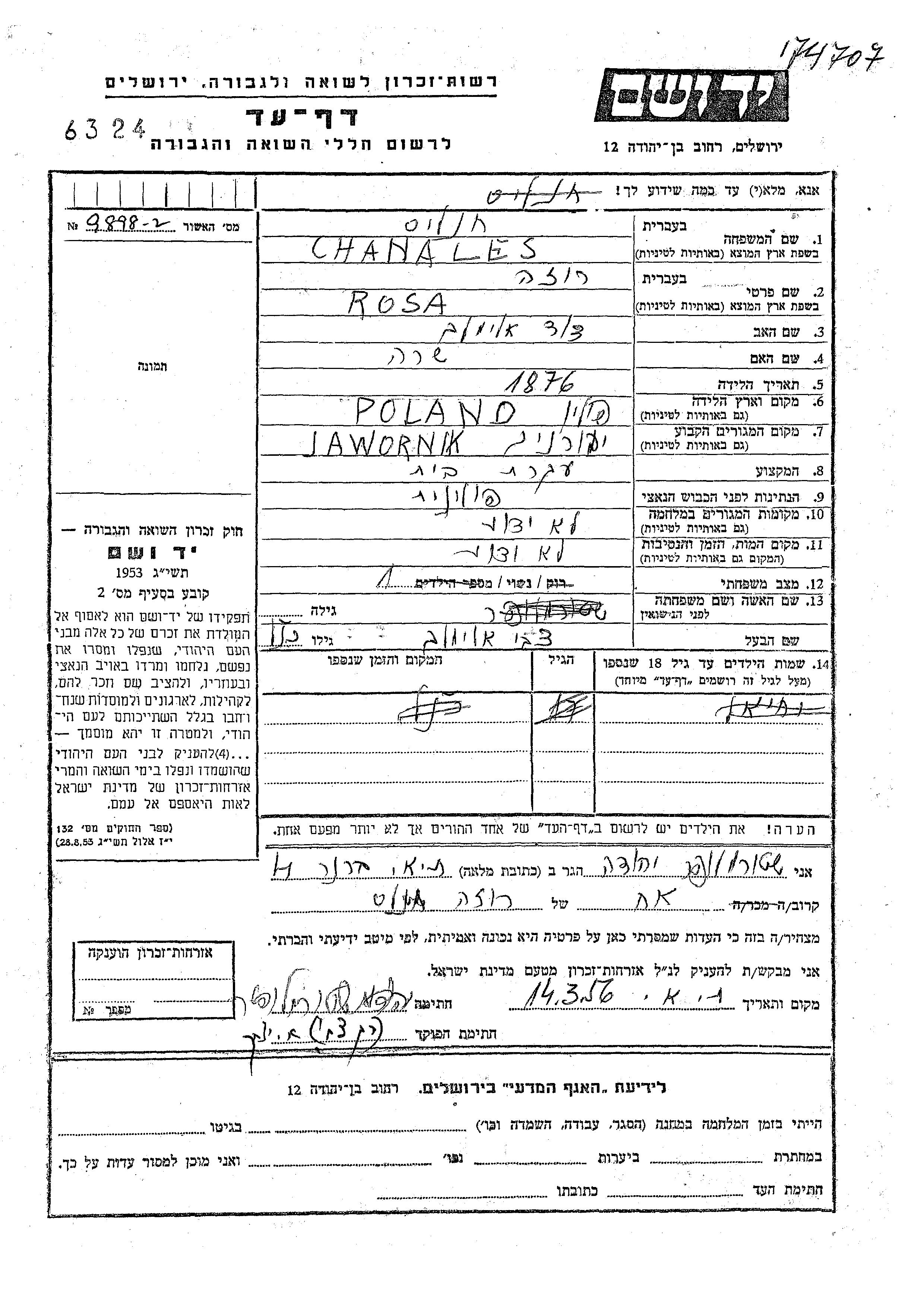Chanales Yekhiel Jawornik, Polen Gedenkblatt