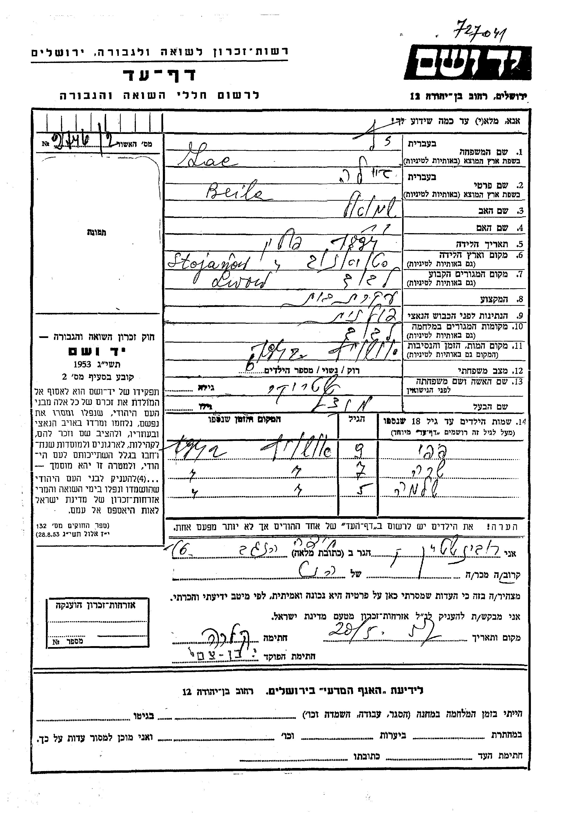 Pepi Zac Zetz wurde Er/sie war der/ die Sohn/Tochter von Mendel und Biela, geb. Shtriker. Er/Sie war Kind. Vor dem Zweiten Weltkrieg er/sie in Lwow, Polen. Während des Krieges war er/sie in Lwow, Polen.