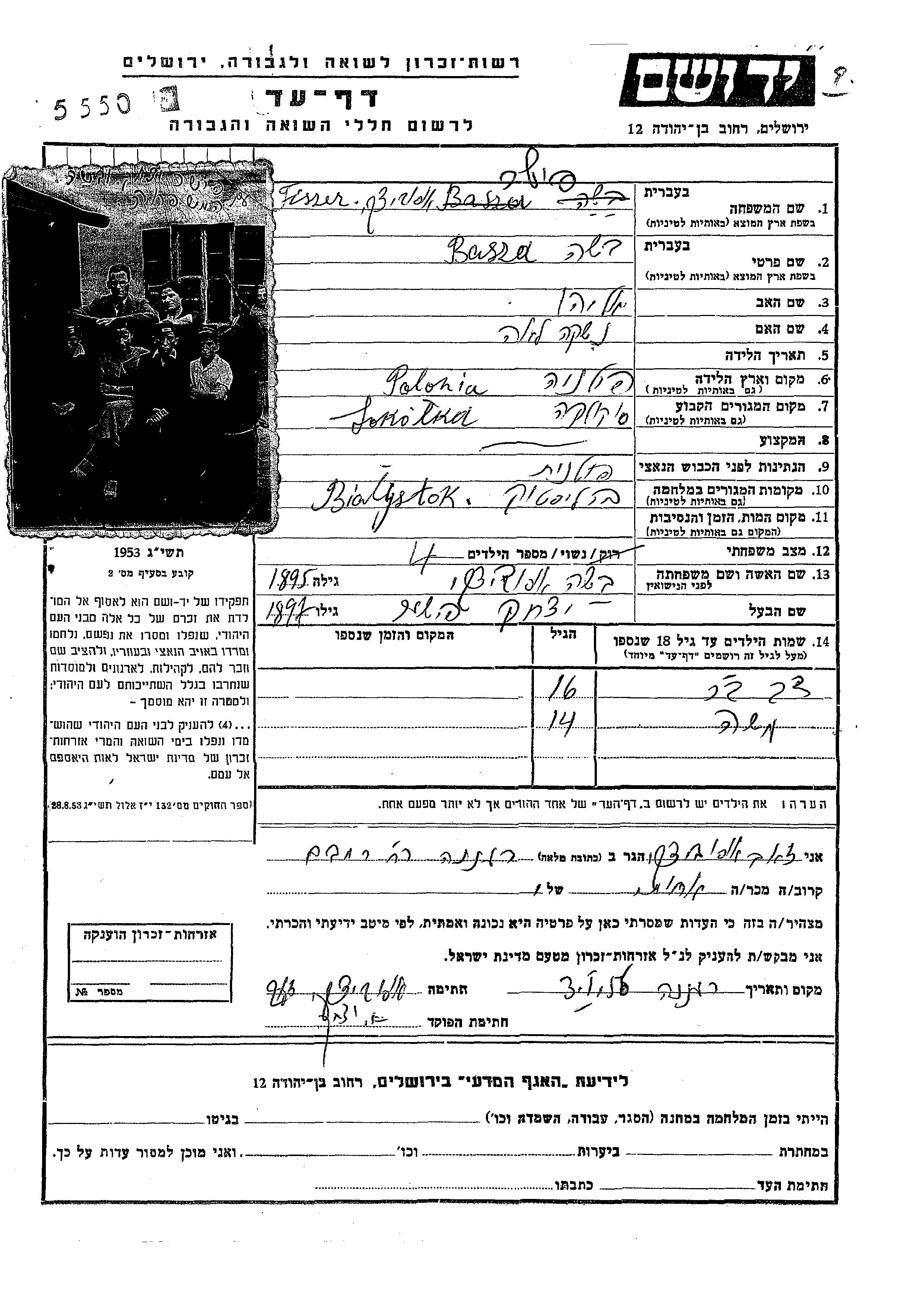 Dov Ber Fiszer wurde Er war der Sohn von Yitzkhak und Basza, geb. Osovitzki. Er war Kind. Vor dem Zweiten Weltkrieg lebte er in Sokolka, Polen. Während des Krieges war er in Bialystok, Polen.
