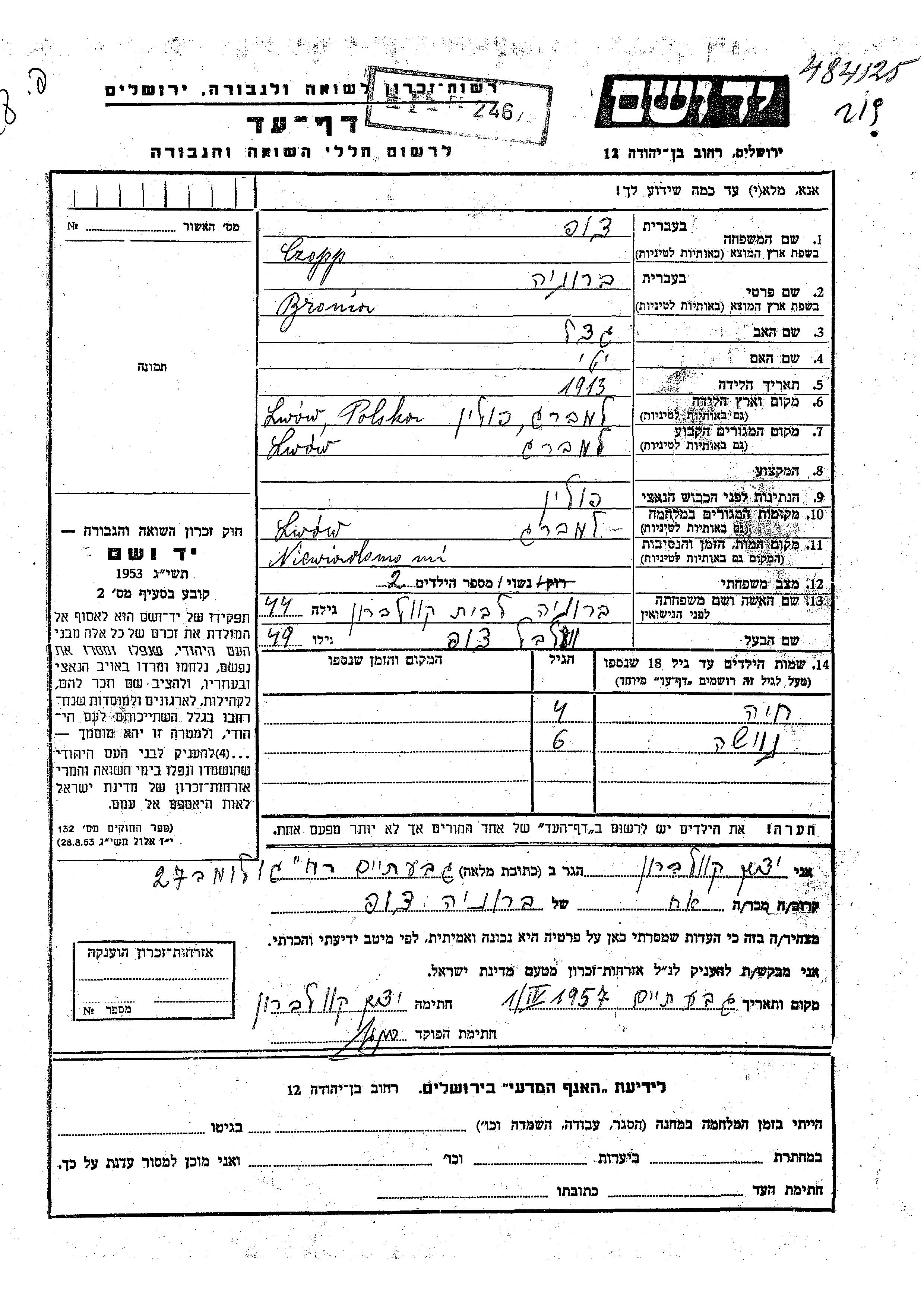 Nusha Czopp wurde Er/sie war der/ die Sohn/Tochter von Volf und Bronia, geb. Kvalbrun. Er/Sie war Kind. Vor dem Zweiten Weltkrieg er/sie in Lwow, Polen. Während des Krieges war er/sie in Lwow, Polen.