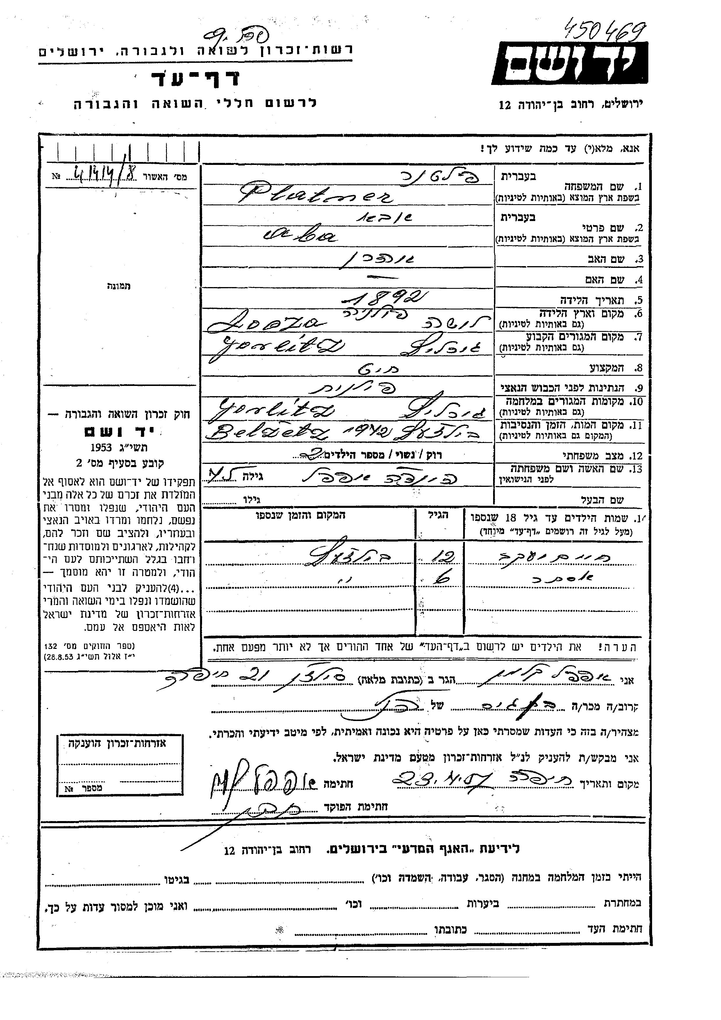Platner Khaim Yaakov Gorlits, Polen Gedenkblatt