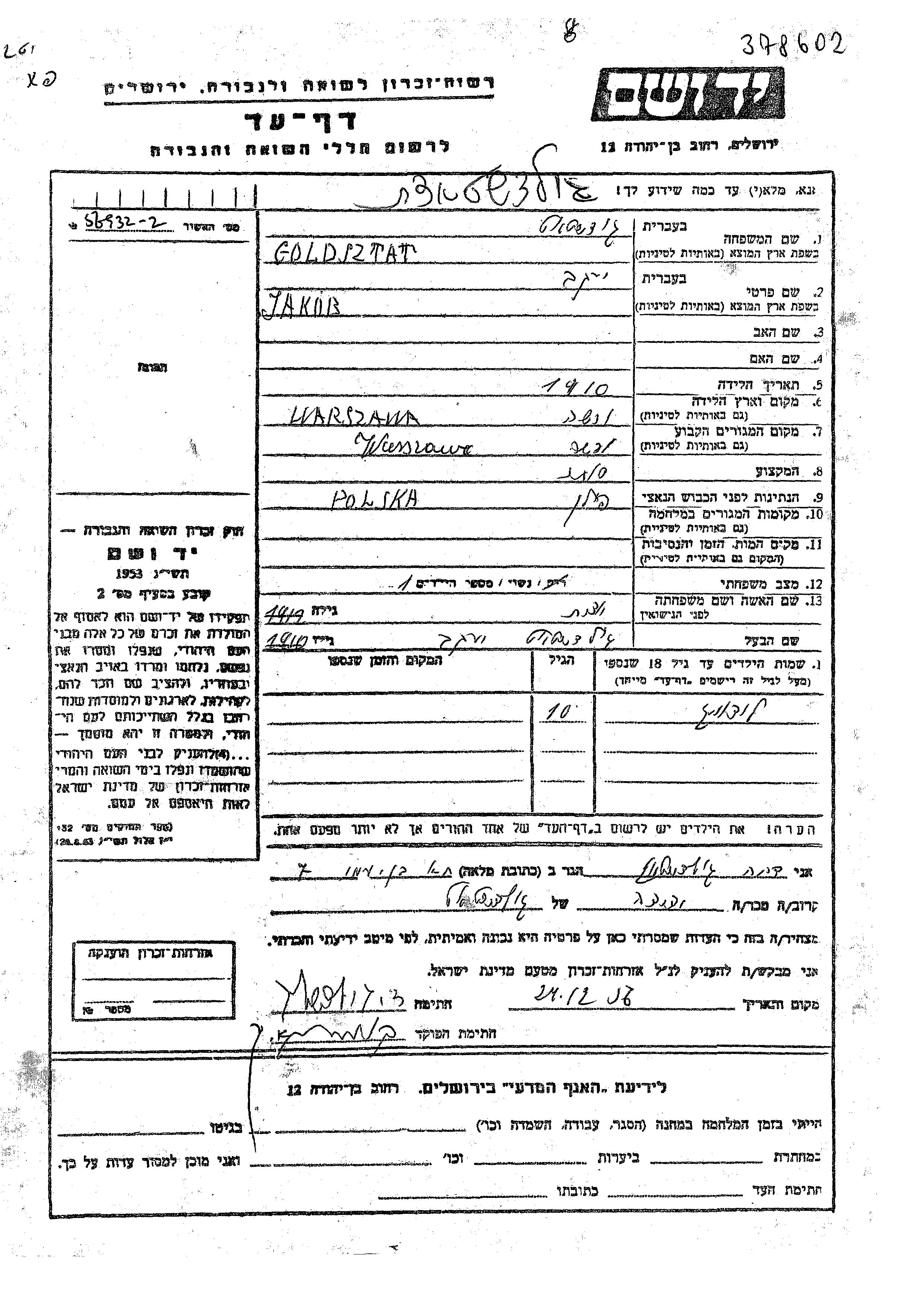 Ludvig Goldsztat wurde Er war der Sohn von Yakob und Iudit. Er war Kind. Vor dem Zweiten Weltkrieg lebte er in Warszawa, Polen.