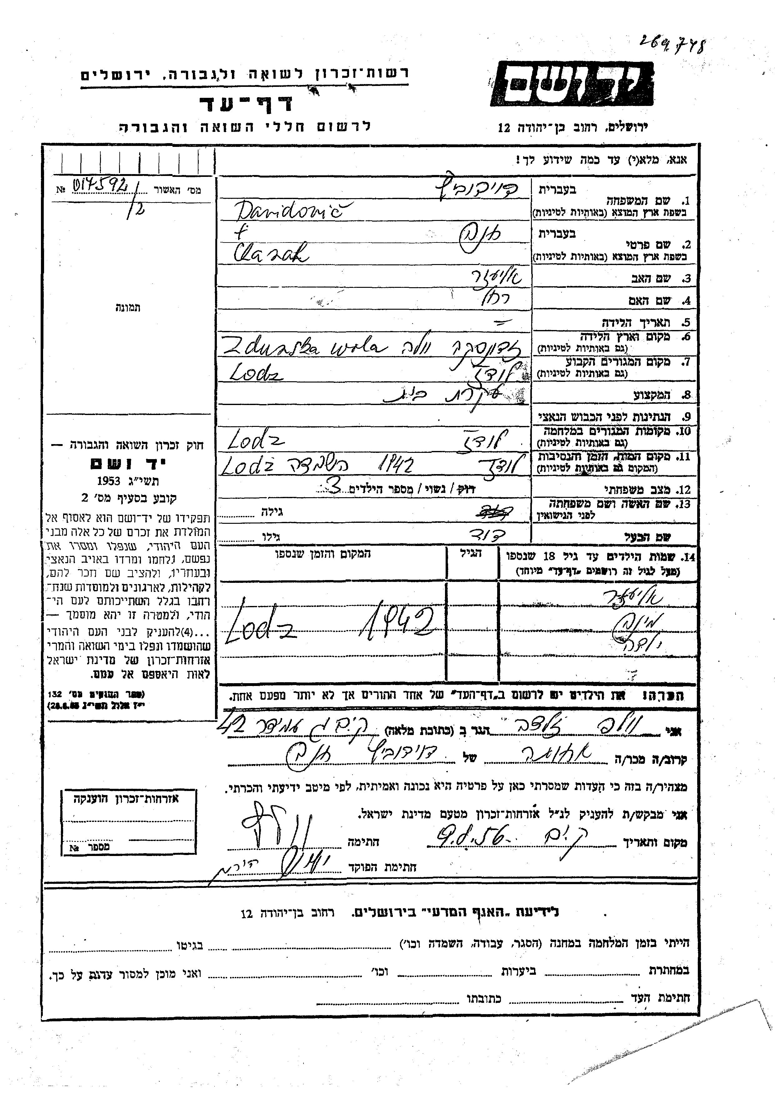 Vorname unbekannt Davidowic wurde Sie war die Tochter von David und Chanah. Sie war Kind. Vor dem Zweiten Weltkrieg lebte sie in Lodz, Polen. Während des Krieges war sie in Lodz, Polen.
