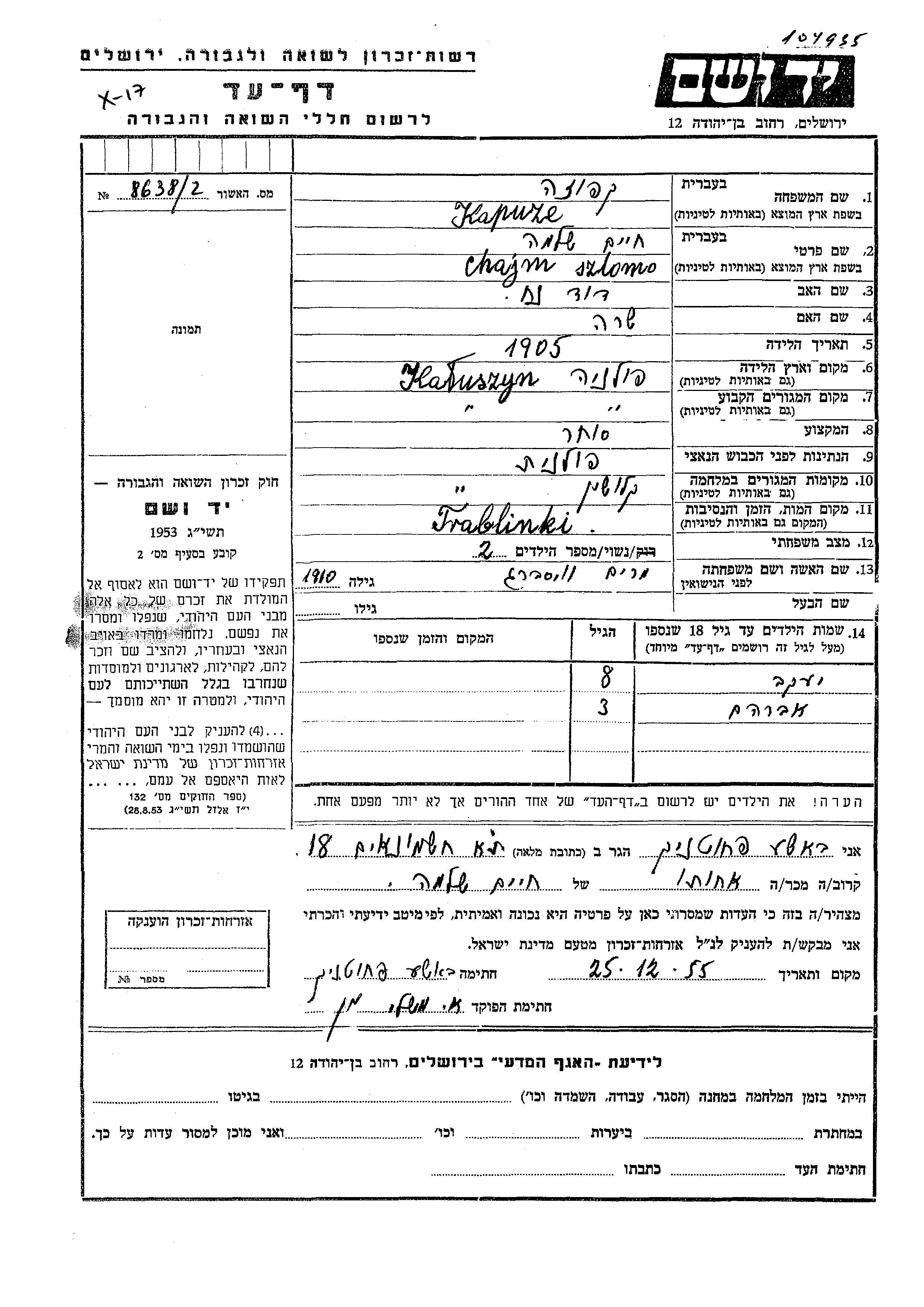 Suche nach einem Todesjahr im Zeitraum der Holocaust: 1933 bis 1945. Bitte wählen Sie 'Exakt' im Auswahlmenü, um nur nach einem einzelnen Jahr zu suchen, alternativ können Sie die flexibleren Optionen '+/- 2 Jahre' oder '+/- 5 Jahre' wählen.