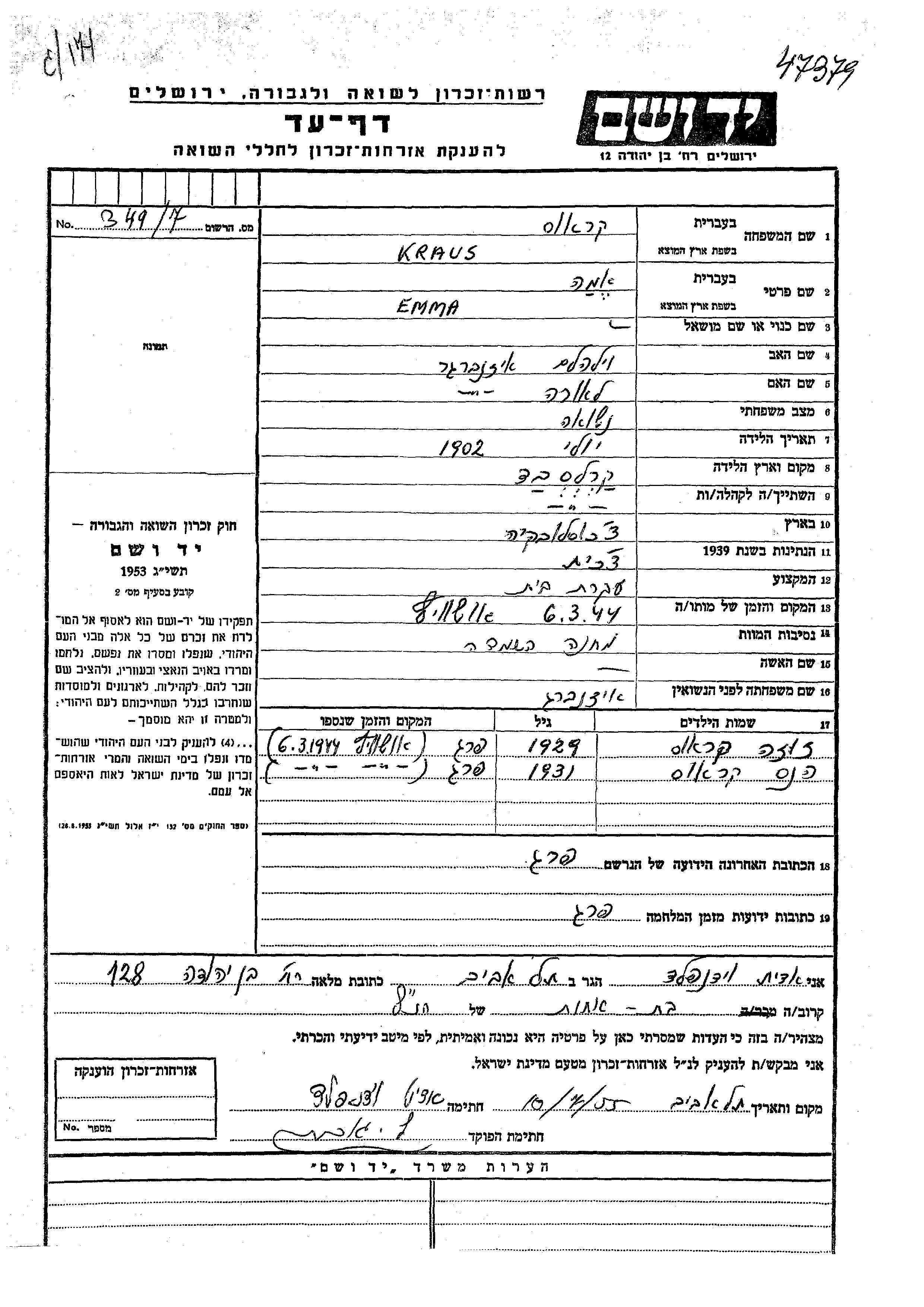 Suche nach einem Todesjahr im Zeitraum der Holocaust: 1933 bis 1945. Bitte wählen Sie 'Exakt' im Auswahlmenü, um nur nach einem einzelnen Jahr zu suchen, alternativ können Sie die flexibleren Optionen '+/- 2 Jahre' oder '+/- 5 Jahre' wählen.