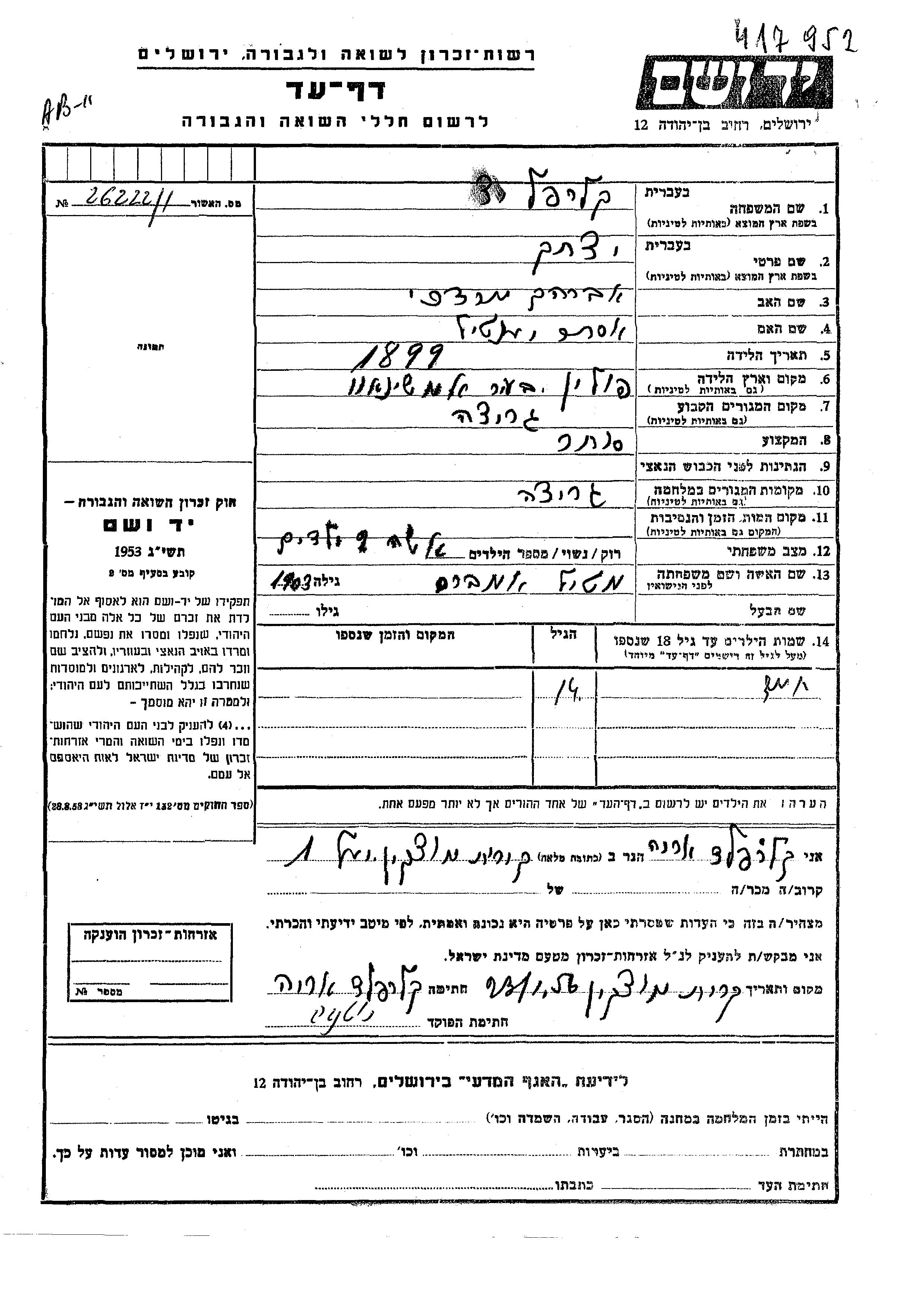 Khaim Klarfeld wurde Er war der Sohn von Yitzkhak und Matil, geb. Ambram. Er war Kind. Vor dem Zweiten Weltkrieg lebte er in Grodzisk, Polen. Während des Krieges war er in Grodzisk, Polen.