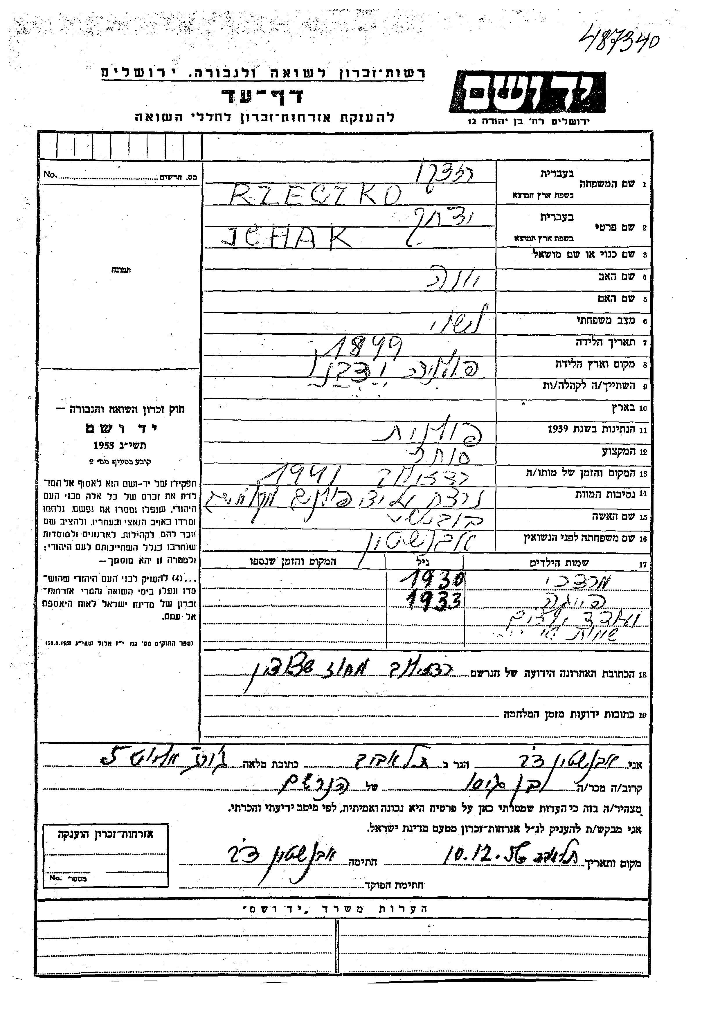 Rzeczko Feiga unbekannter Ort, Gedenkblatt