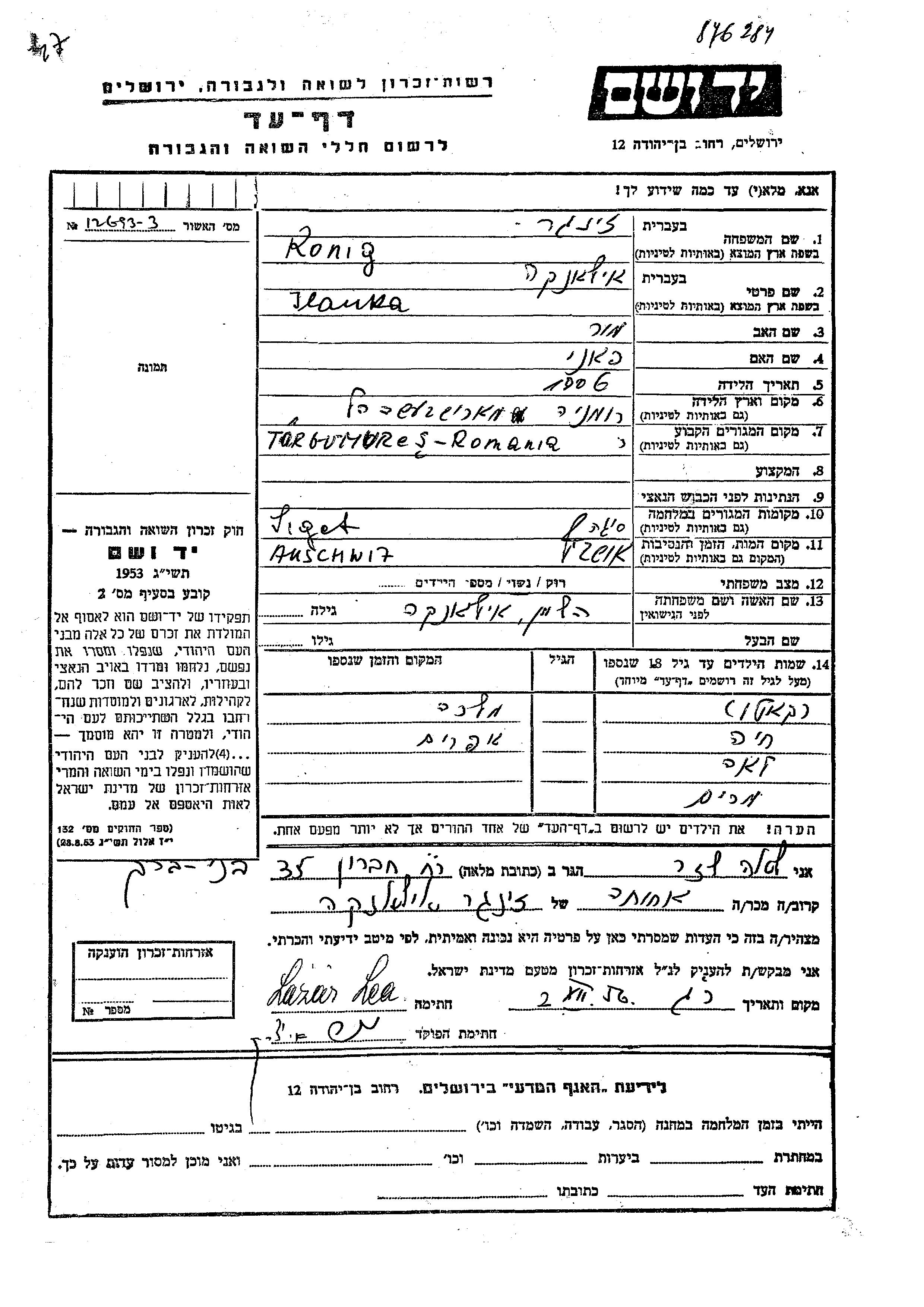 Efraim Zinger Konig wurde Er war der Sohn von Helein Ilonka Jlanka. Er war Kind. Vor dem Zweiten Weltkrieg lebte er in Targu Mures, Rumänien. Während des Krieges war er in Siget, Rumänien.