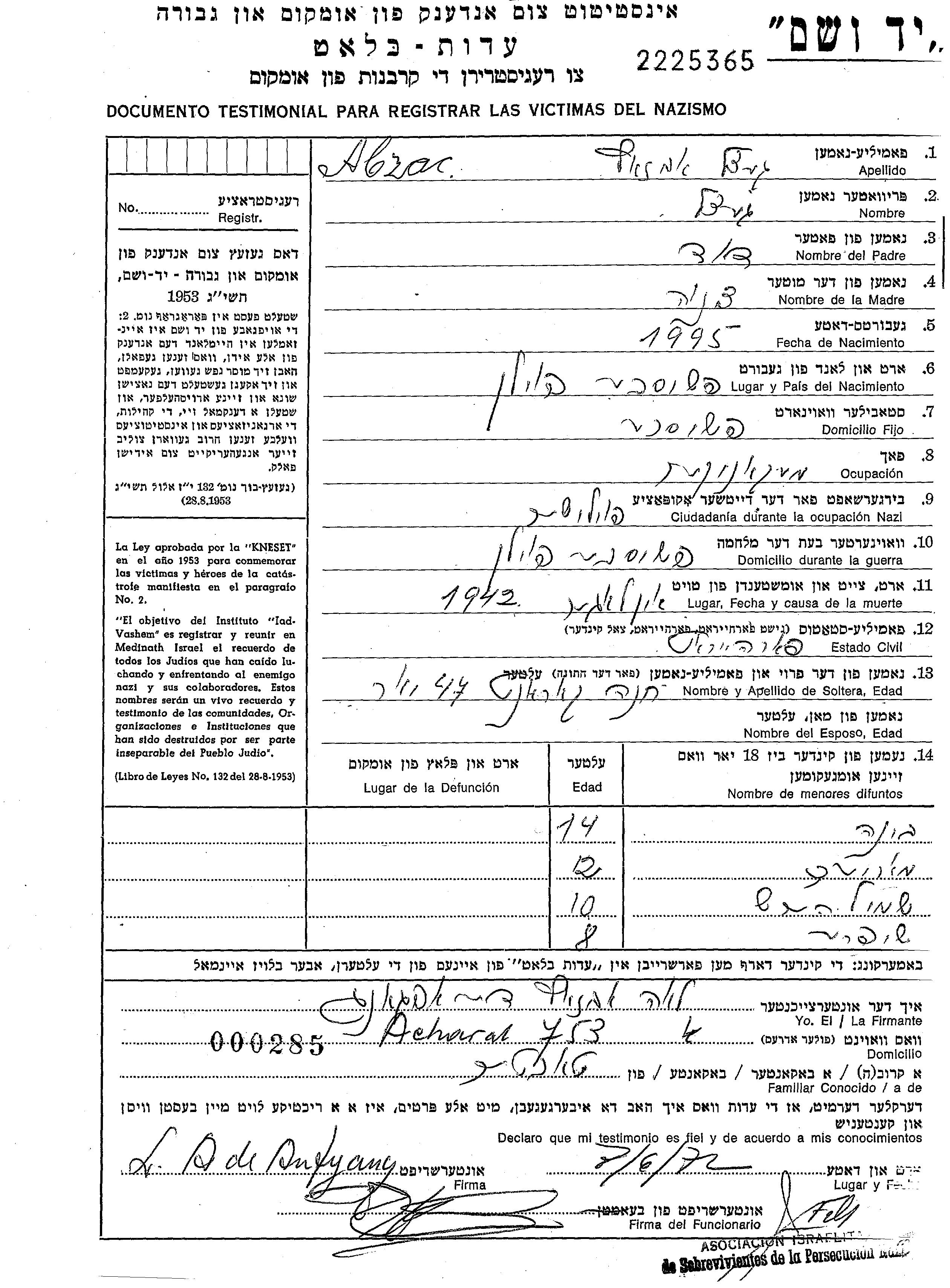Shmuel Abzac wurde Er war der Sohn von Getzl und Khana. Er war Kind. Vor dem Zweiten Weltkrieg lebte er in Przysucha, Polen. Während des Krieges war er in Przysucha, Polen.