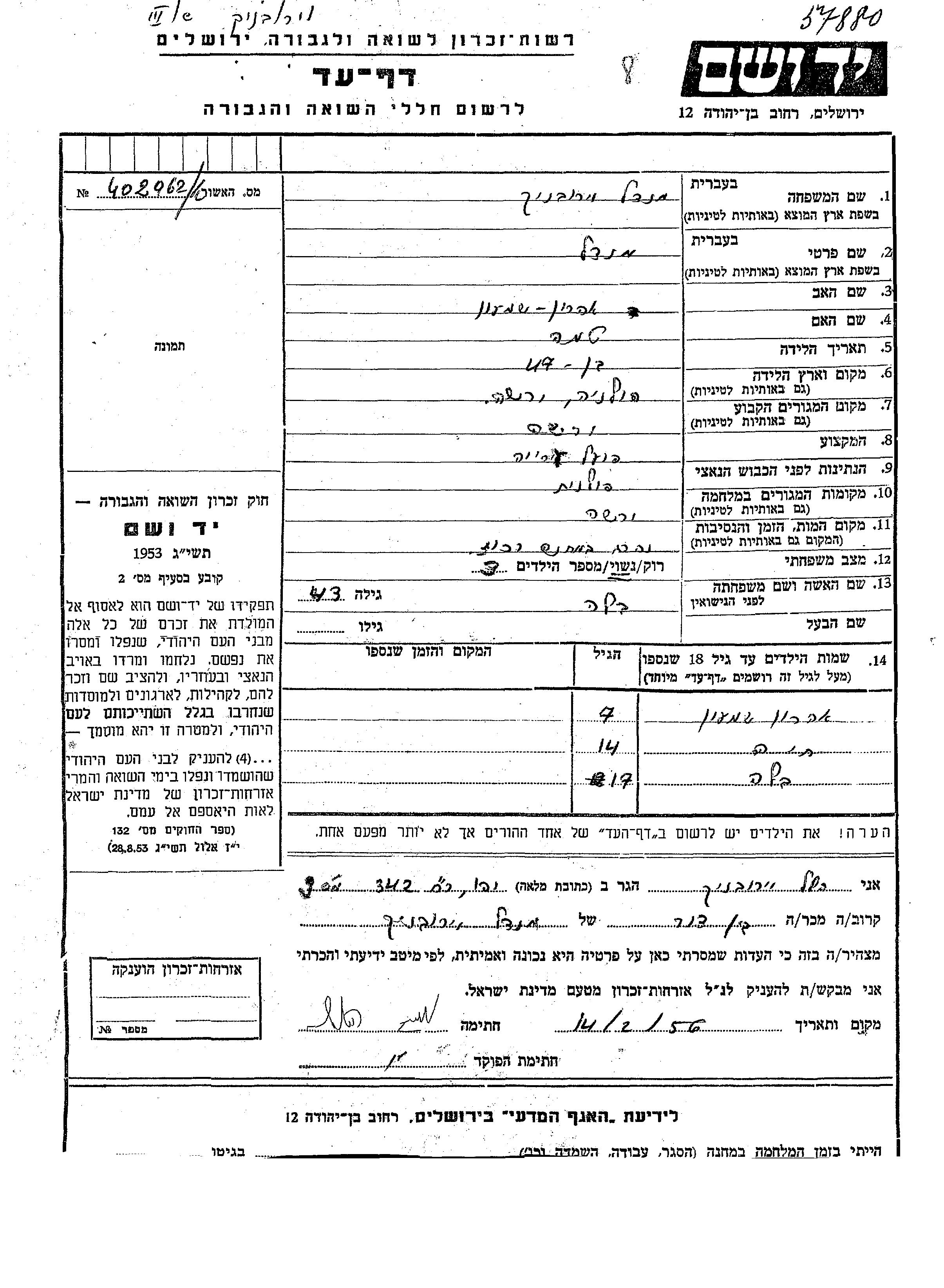 Aharon Shimon wurde in der Schoah ermordet.