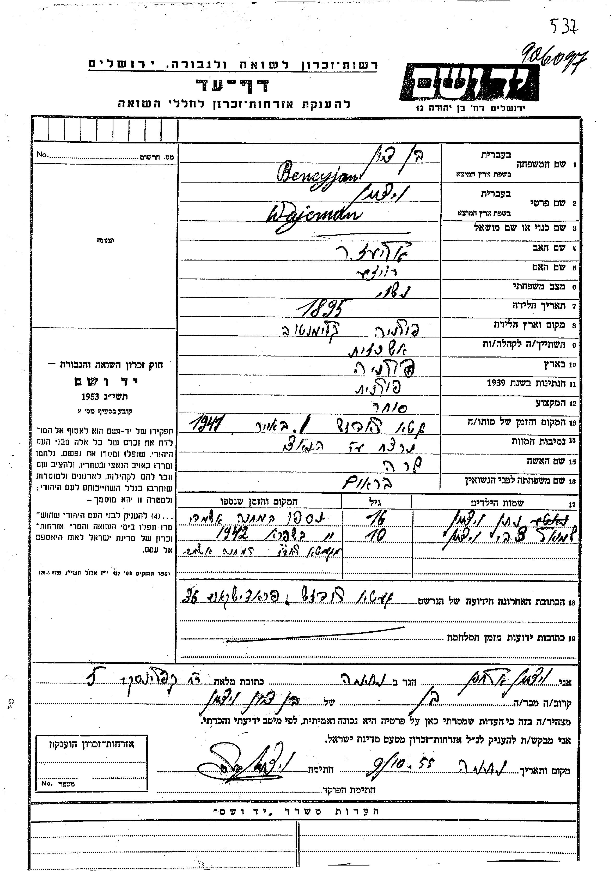 Natan Wajcman wurde Er war der Sohn von Bencyjon und Sara, geb. Braum. Er war Kind. Während des Krieges war er in Lodz, Polen.