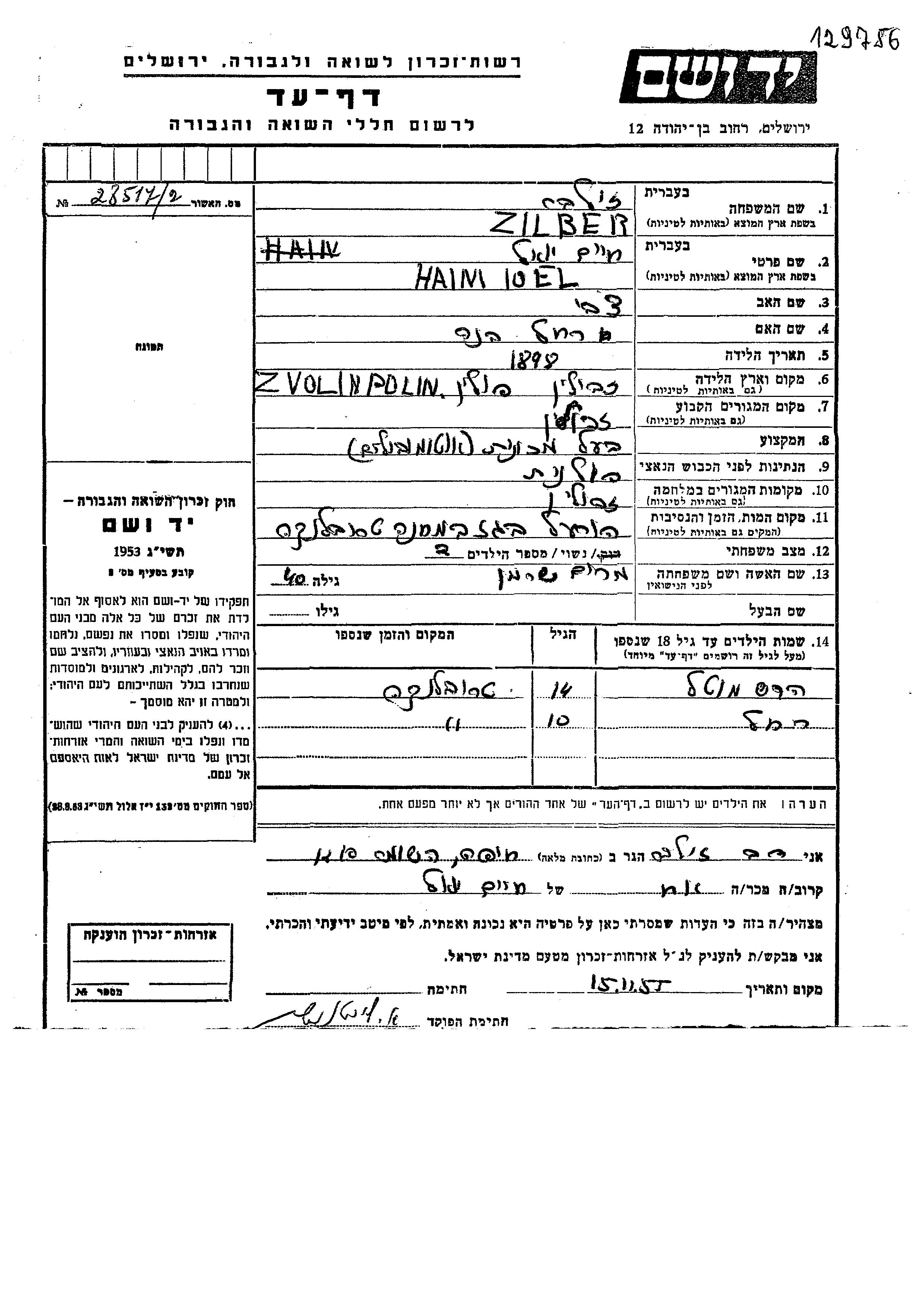 Zilber Rakhel Zvolin, Polen Gedenkblatt