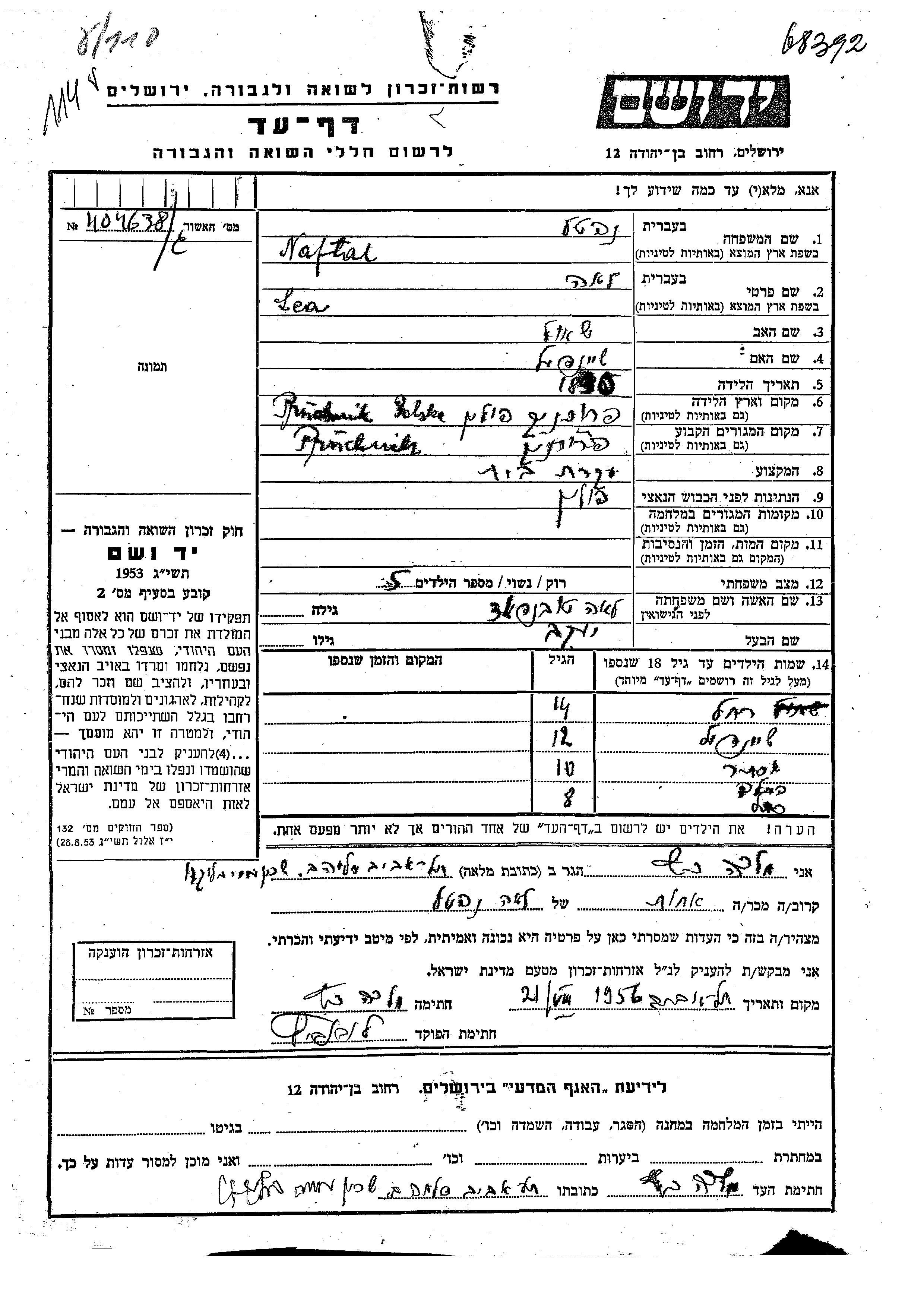 Ester Naftal wurde Sie war die Tochter von Yaakov und Lea, geb. Tubenfeld. Sie war Kind. Vor dem Zweiten Weltkrieg lebte sie in Pruchnik Miasto, Polen.