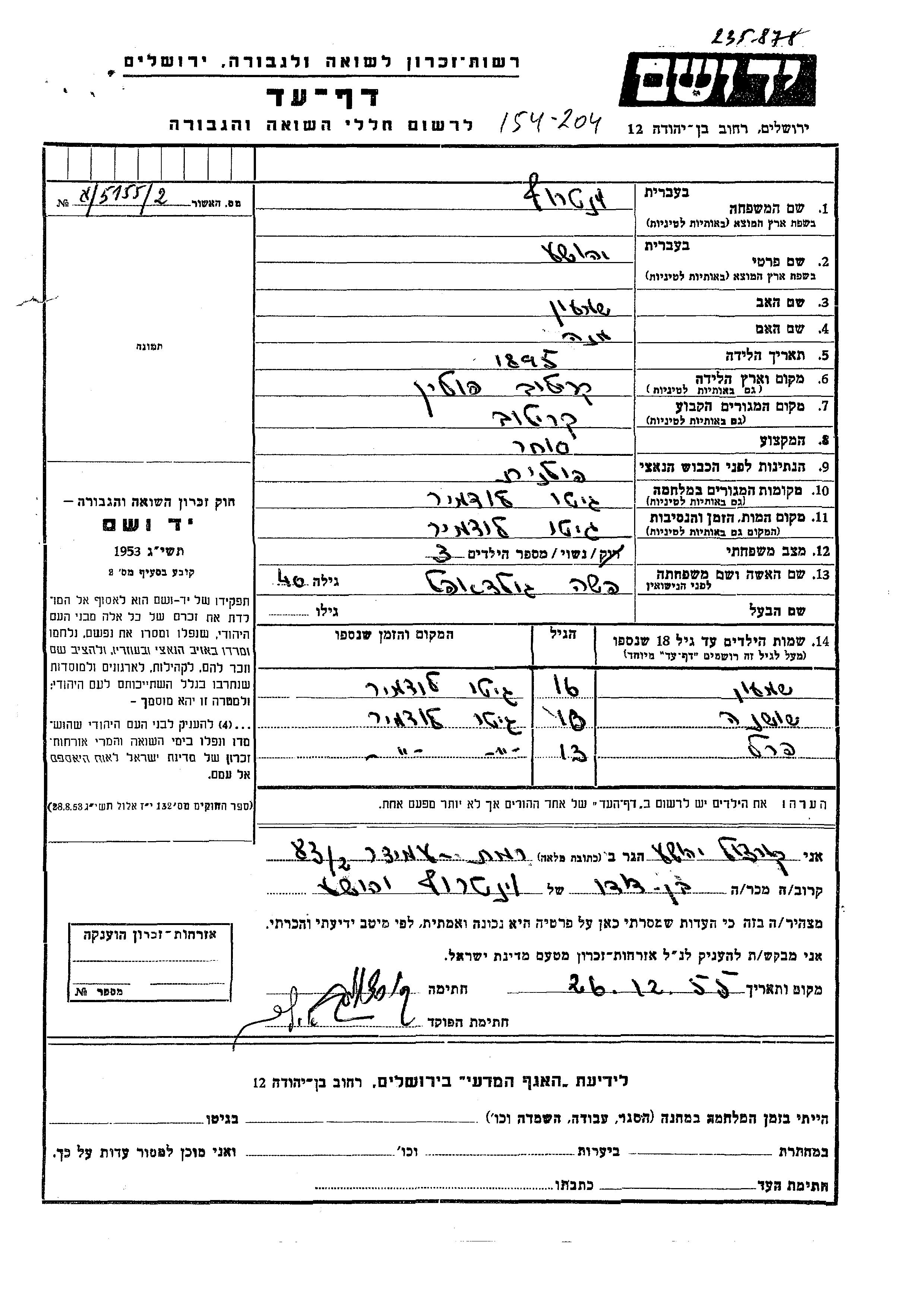 Yad Vashem - Gedenkblätter Sammlung