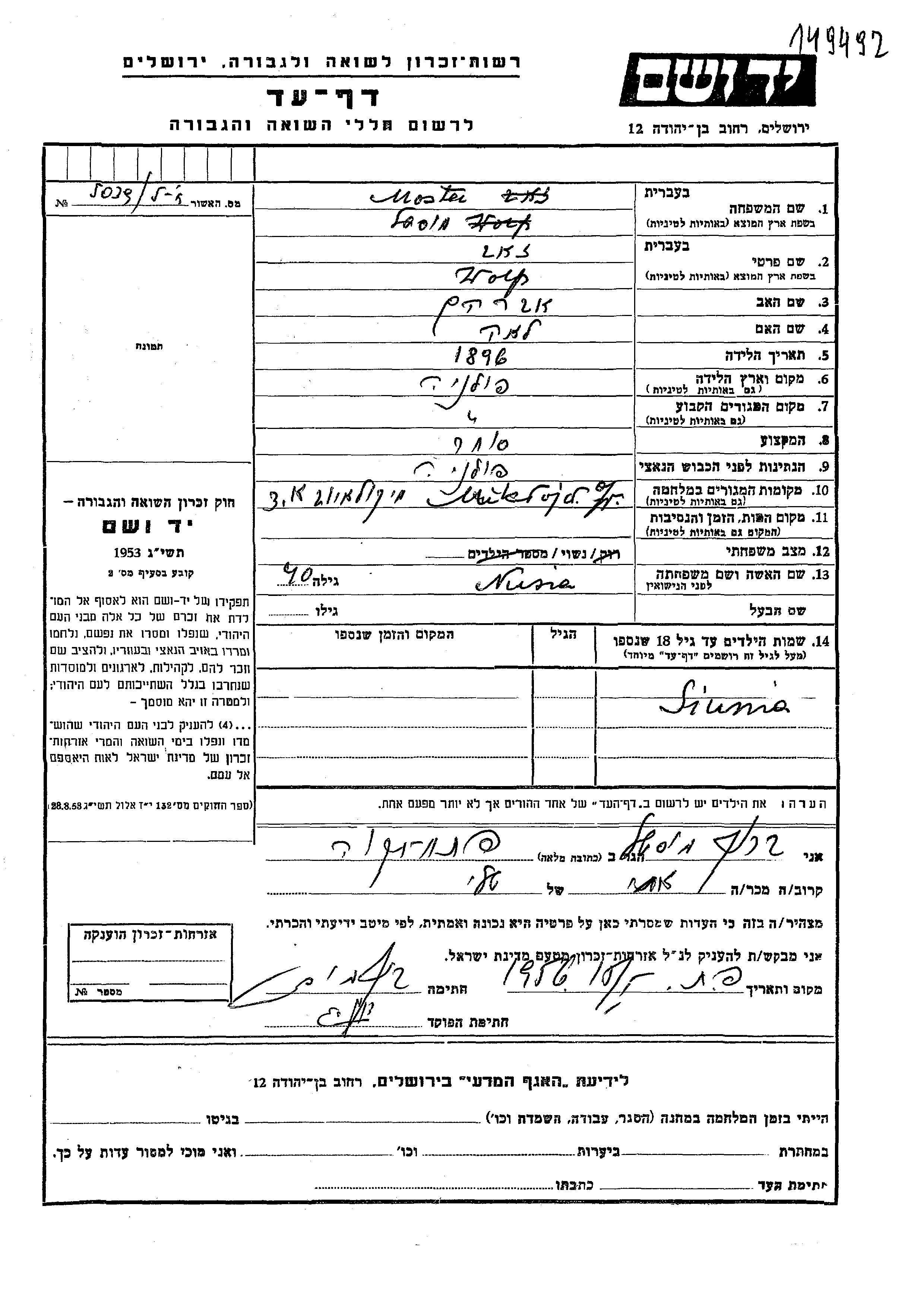 Siunia Moster Mostel wurde Sie war die Tochter von Wolf Zeev und Nushia. Sie war Kind. Vor dem Zweiten Weltkrieg lebte sie in Polen.