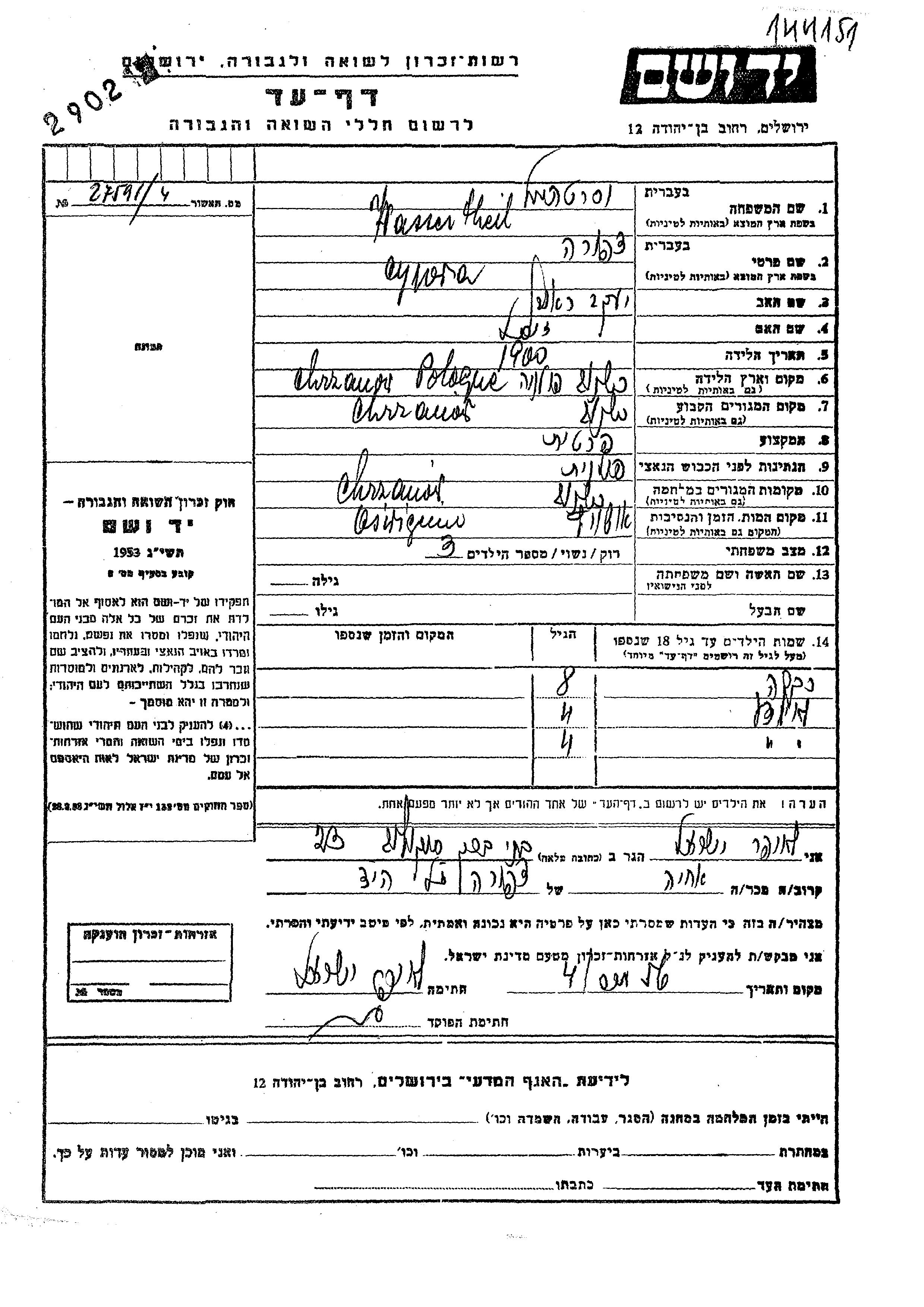 Vorname unbekannt Wassertheil wurde Er/sie war der/ die Sohn/Tochter von Cypora. Er/Sie war Kind. Vor dem Zweiten Weltkrieg er/sie in Chrzanow, Polen. Während des Krieges war er/sie in Chrzanow, Polen.