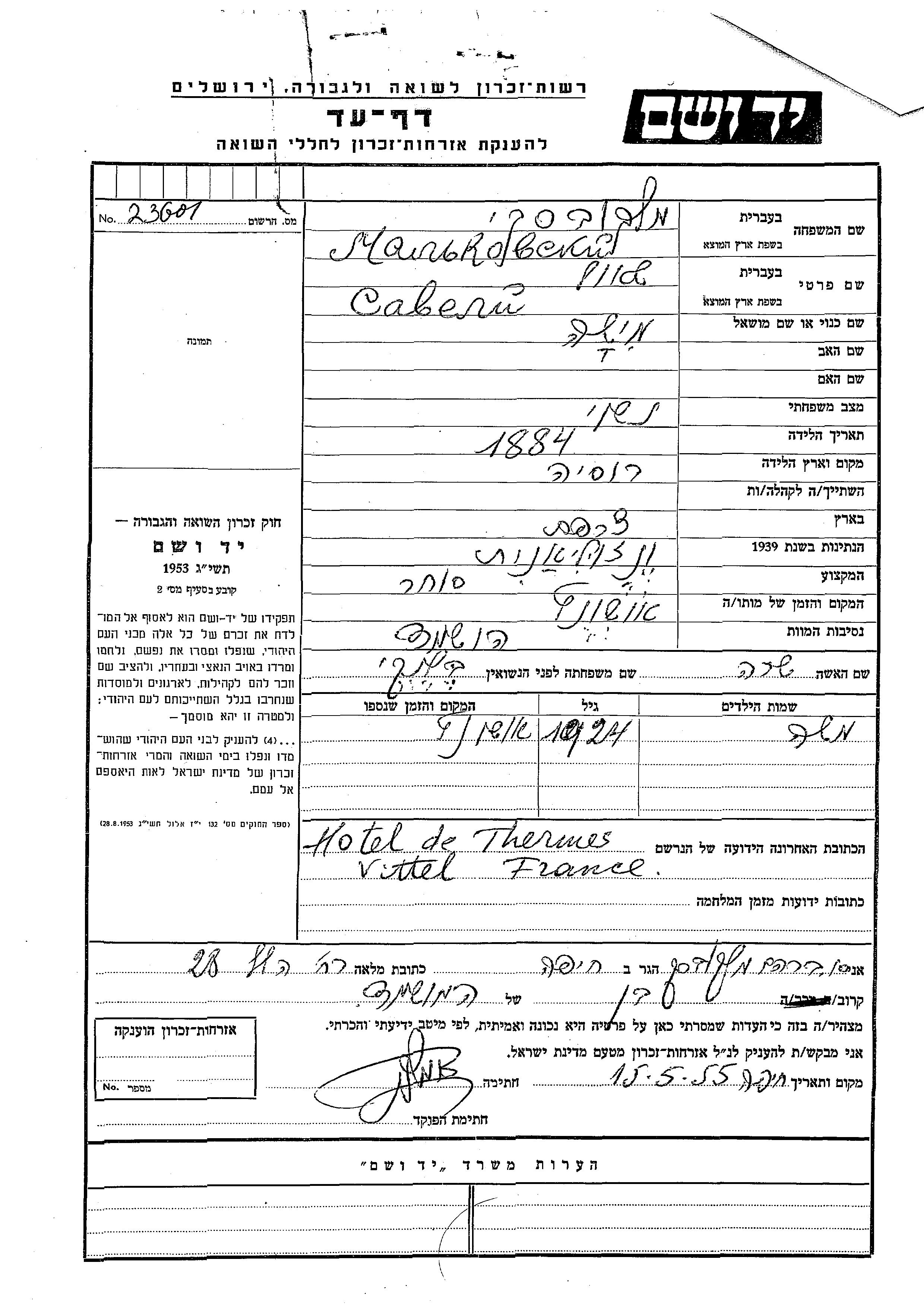 Suche nach einem Todesjahr im Zeitraum der Holocaust: 1933 bis 1945. Bitte wählen Sie 'Exakt' im Auswahlmenü, um nur nach einem einzelnen Jahr zu suchen, alternativ können Sie die flexibleren Optionen '+/- 2 Jahre' oder '+/- 5 Jahre' wählen.