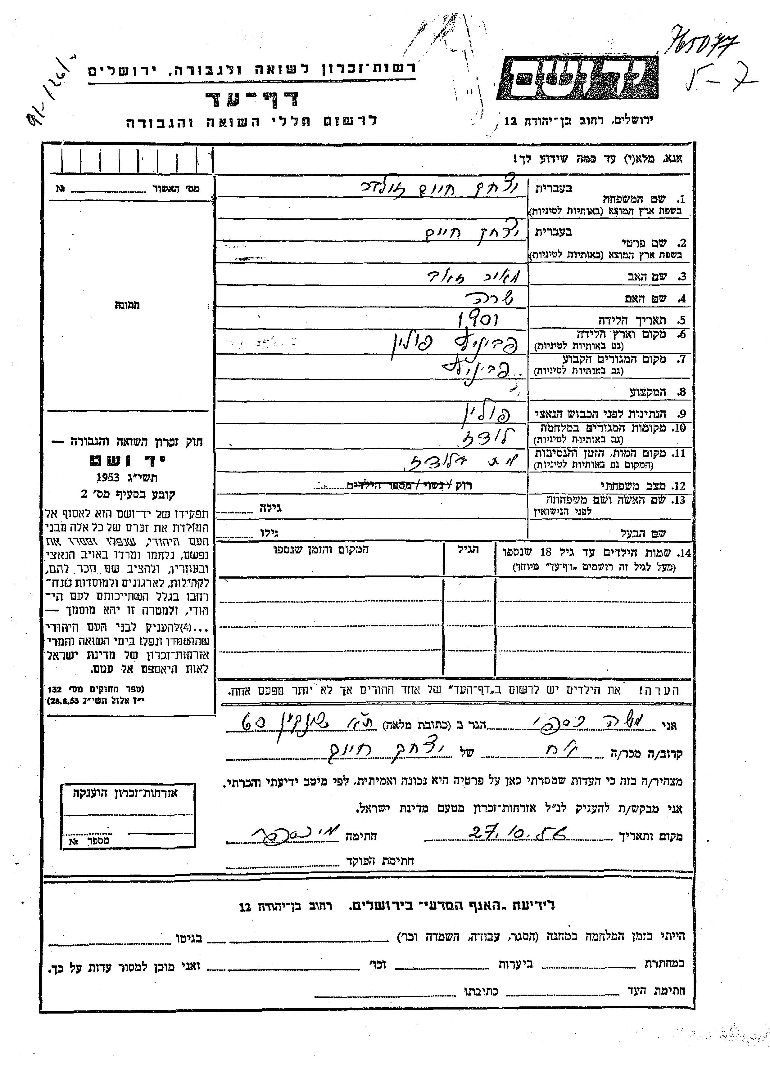 Yitzkhak Khaim wurde in der Schoah ermordet. Todesort: Lodz, Polen.