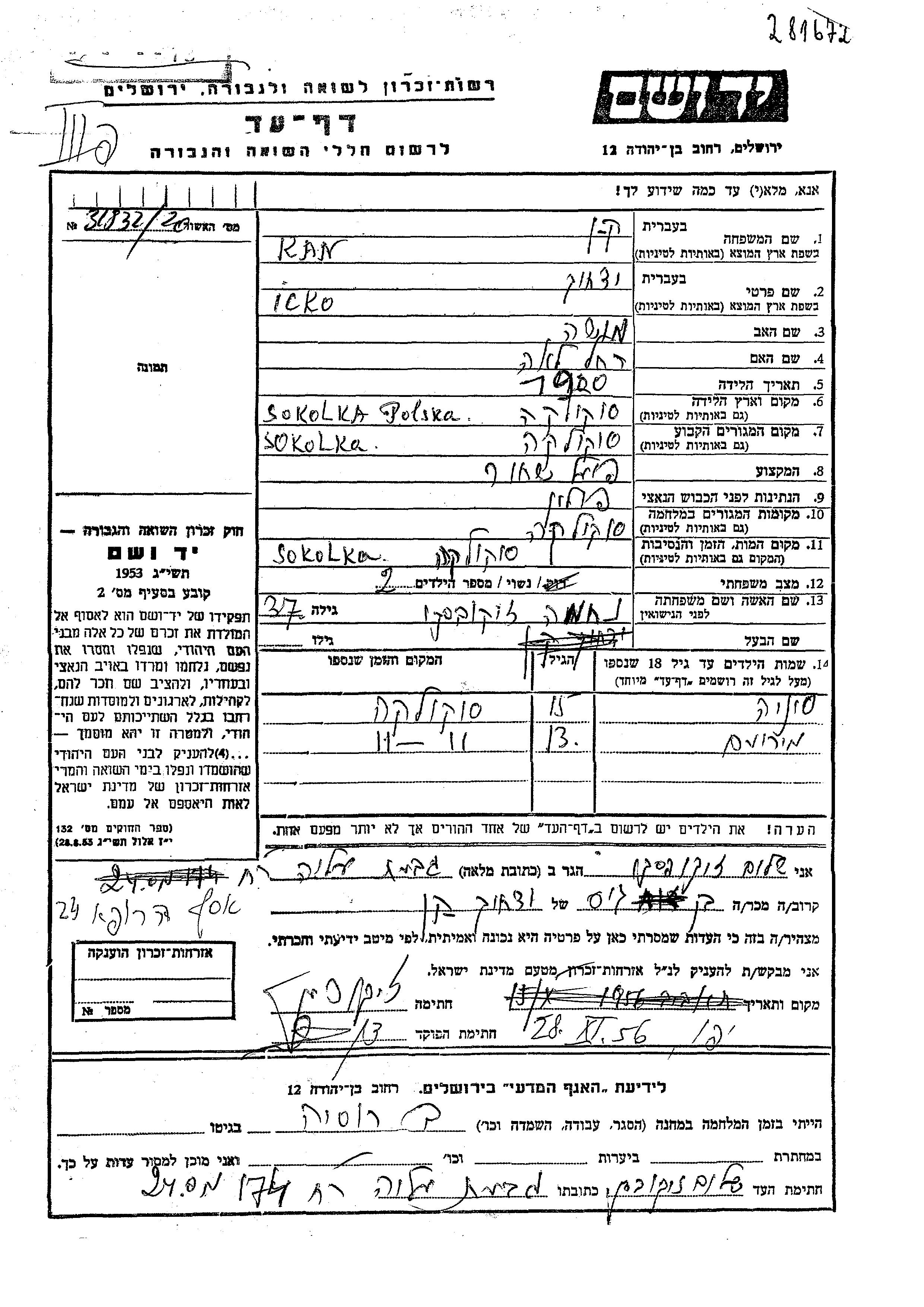 Kan Miriam Sokolka, Polen Gedenkblatt