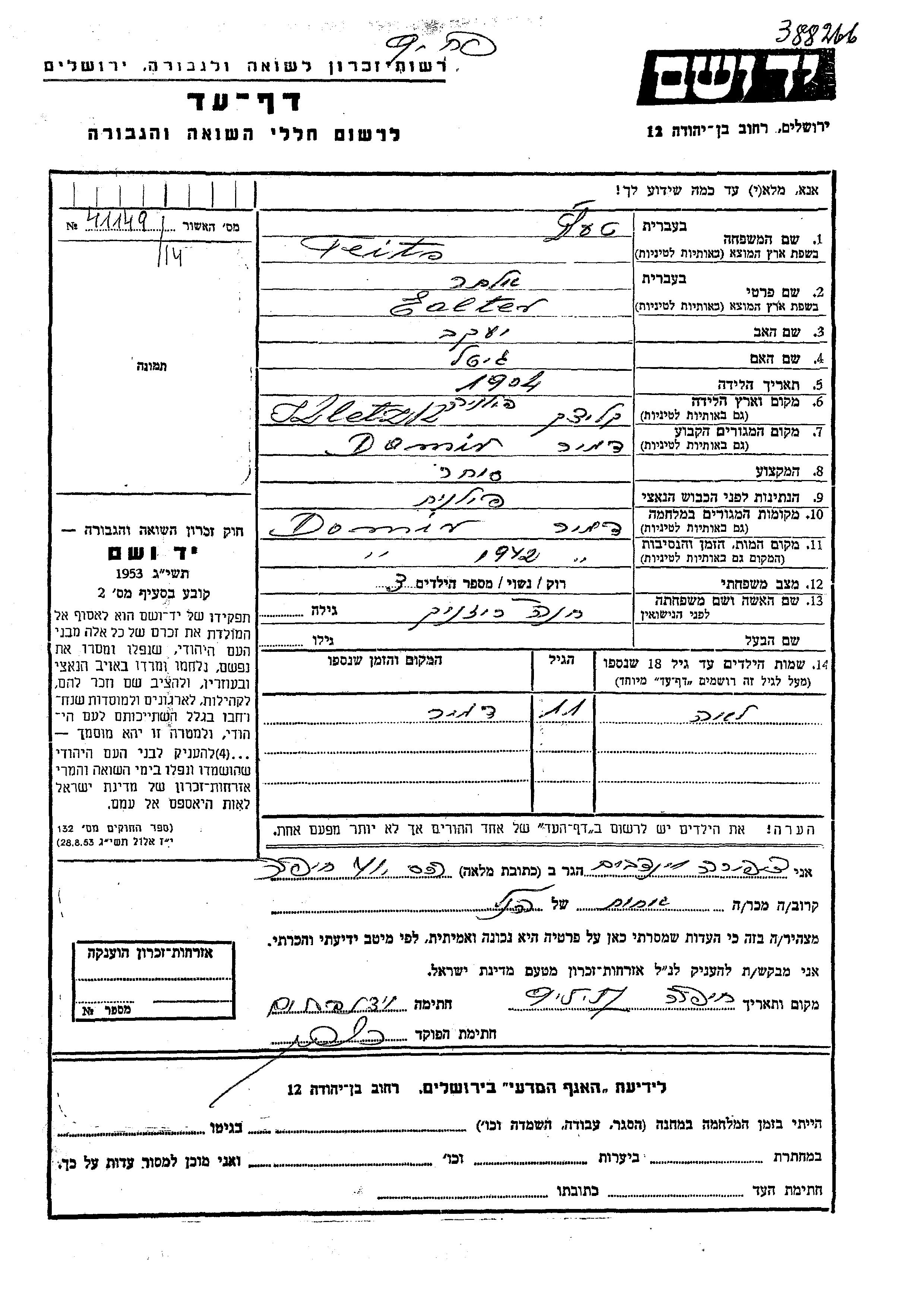 Lea Teits Tetz wurde Sie war die Tochter von Alter und Khana, geb. Ruznik. Sie war Kind. Vor dem Zweiten Weltkrieg lebte sie in Damir, Ukraine (UdSSR). Während des Krieges war sie in Damir, Ukraine (UdSSR).